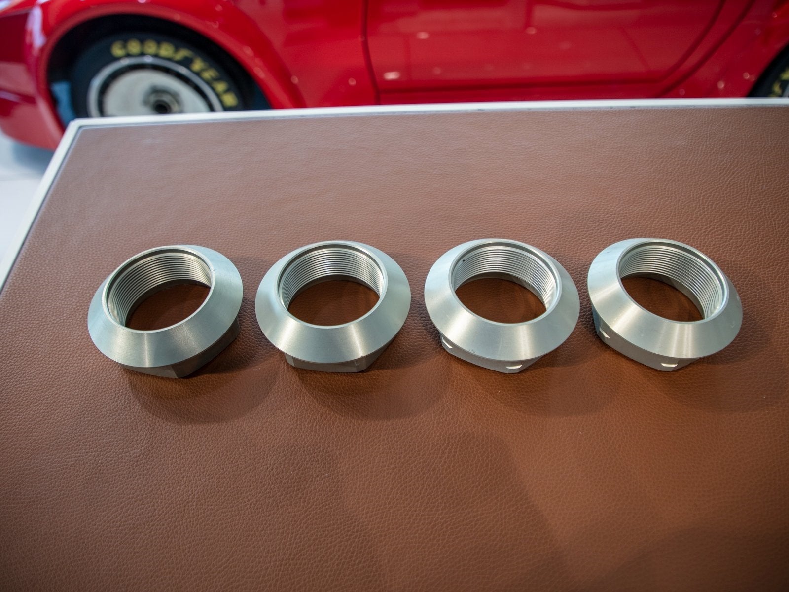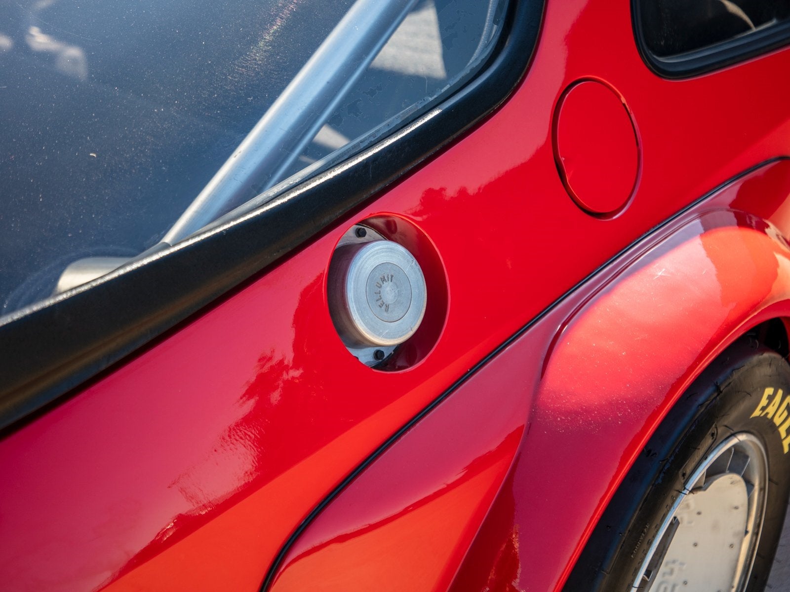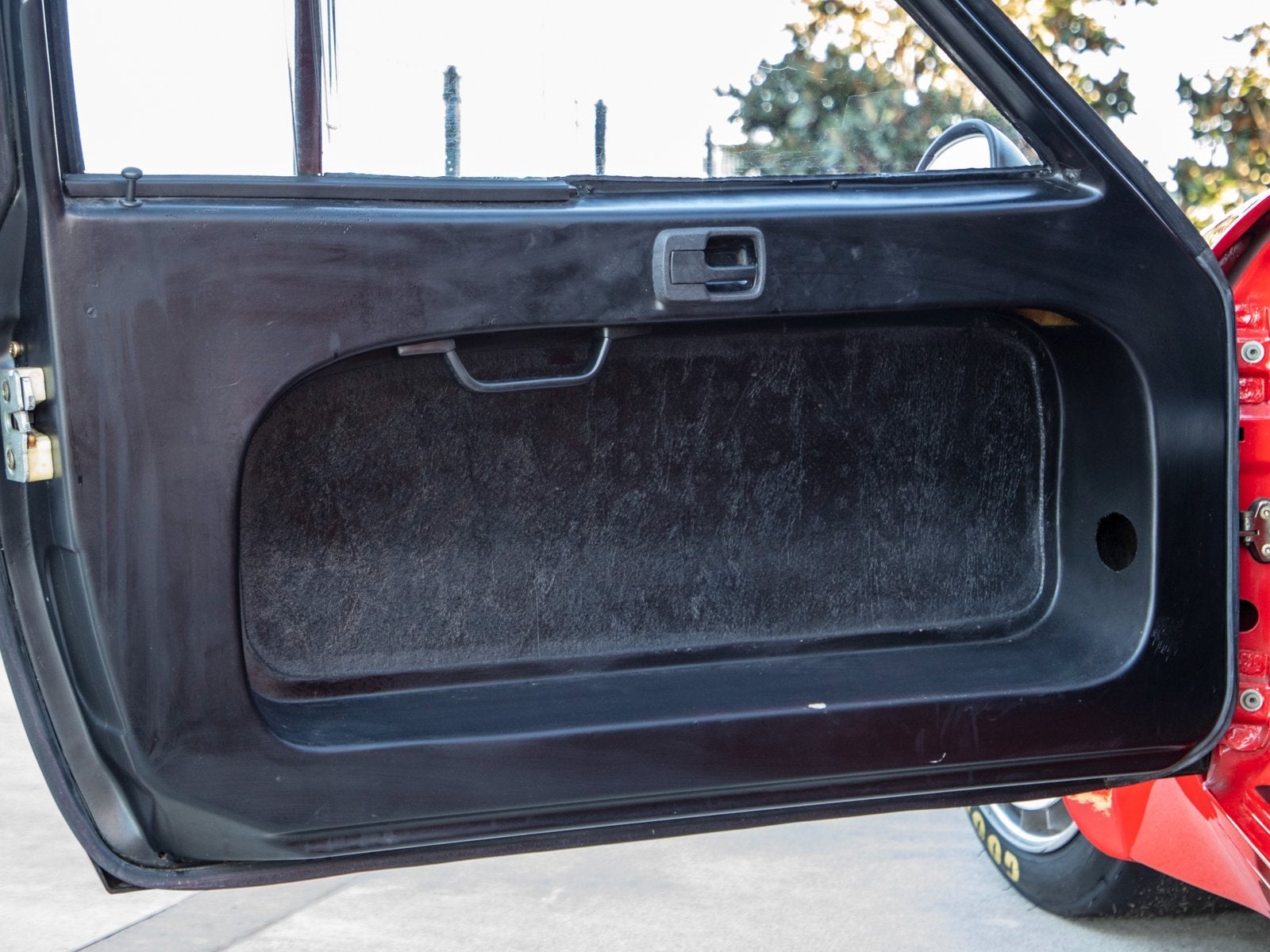 The 924 GTR's large fender flares covered wide 16-inch center-lock BBS alloy wheels fitted with internally-finned turbine covers to enhance brake cooling. The windshield was of thinner glass, while the lightweight door shells held only a latch mechanism and frames for sliding plastic panels. The interior was all business, virtually identical to the factory racers save for the second bucket seat and harness for a passenger; there was also a fire-suppression system and additional instrumentation.