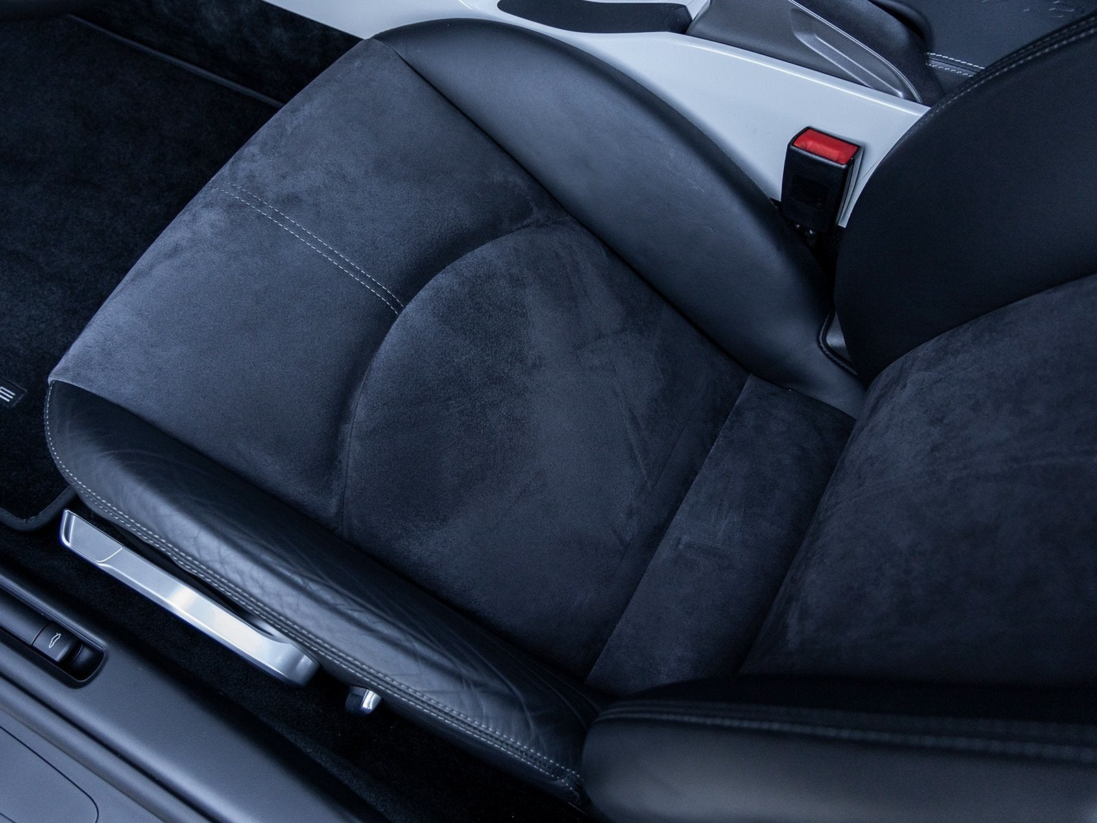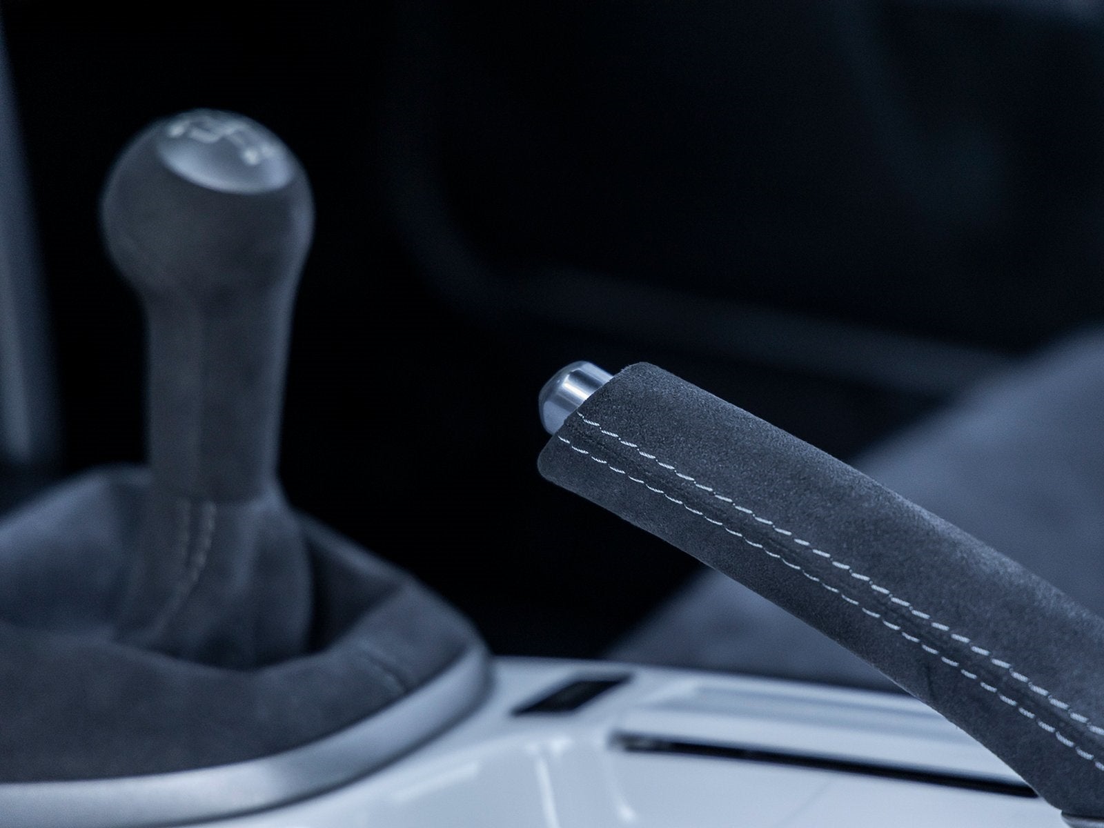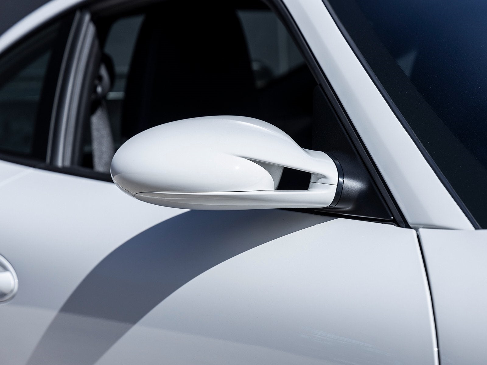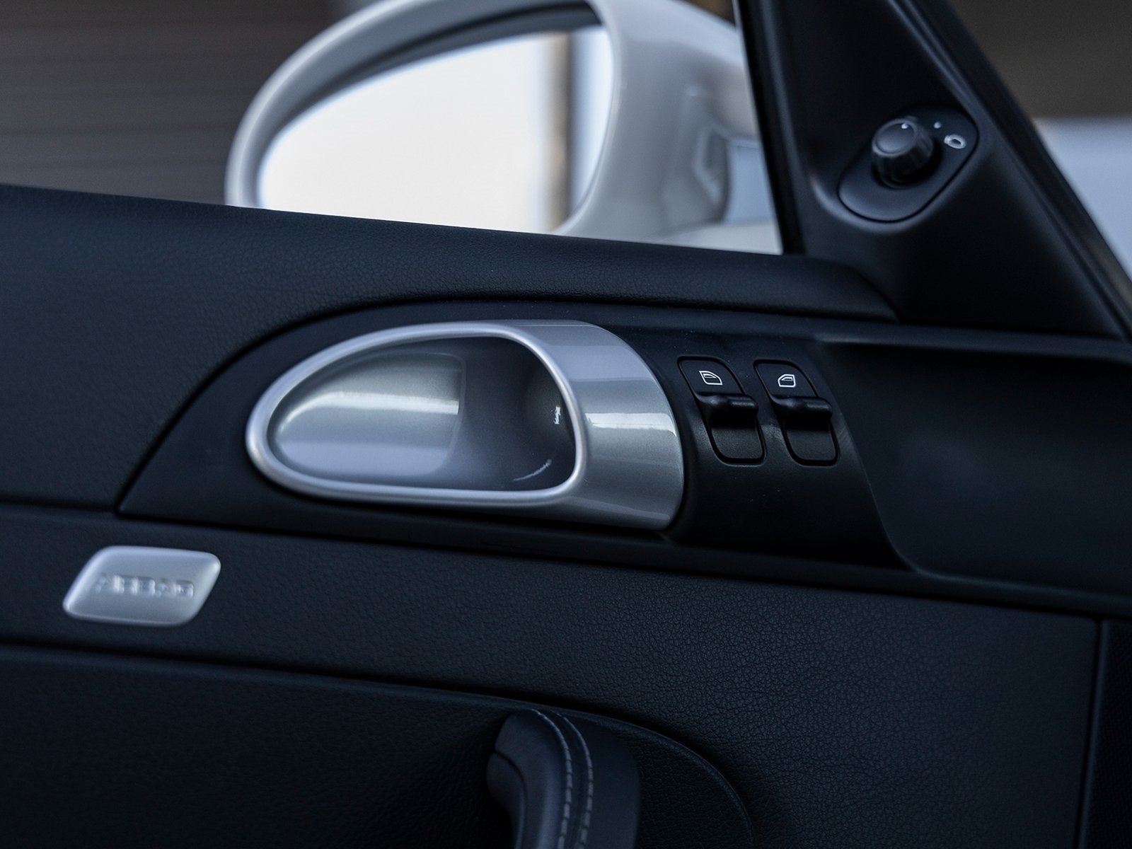 The GT3 RS stands as a beacon of design and performance, its Carrara White exterior not just a color, but a badge of honor that reflects Porsche's illustrious racing heritage. Adorned with 19 GT3 RS Wheels in a Deviating Color and Bi-Xenon Headlights, it presents an intimidating stance. Standard Rocker Panels and Rear Center Console painted in the cars color, along with Side Stripes with GT3 RS logo in a contrasting hue, enhance its aggressive allure.
