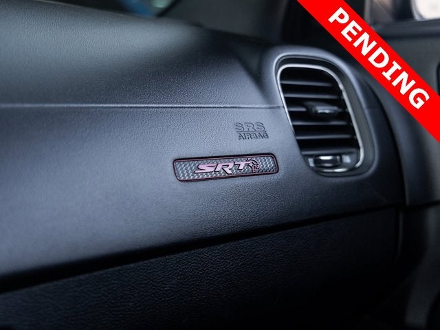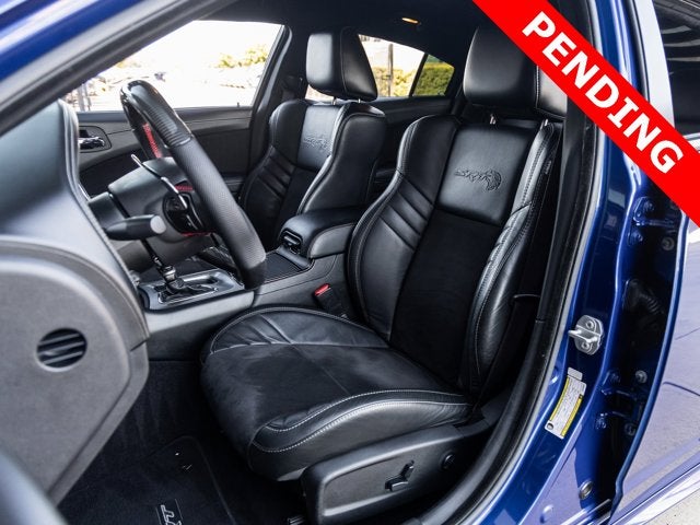 Step inside and the Black Alcantara / Laguna interior surrounds you with comfort and purpose-built luxury. Heated and ventilated front seats, heated second-row seats, and a premium-stitched dash panel elevate daily driving, while SRT Hellcat interior badging and dark engine-turned aluminum accents reinforce its performance-driven character. The Alcantara-wrapped steering wheel, suede door trim panels, and memory settings for the driver seat and mirrors ensure both control and convenience at every turn.
