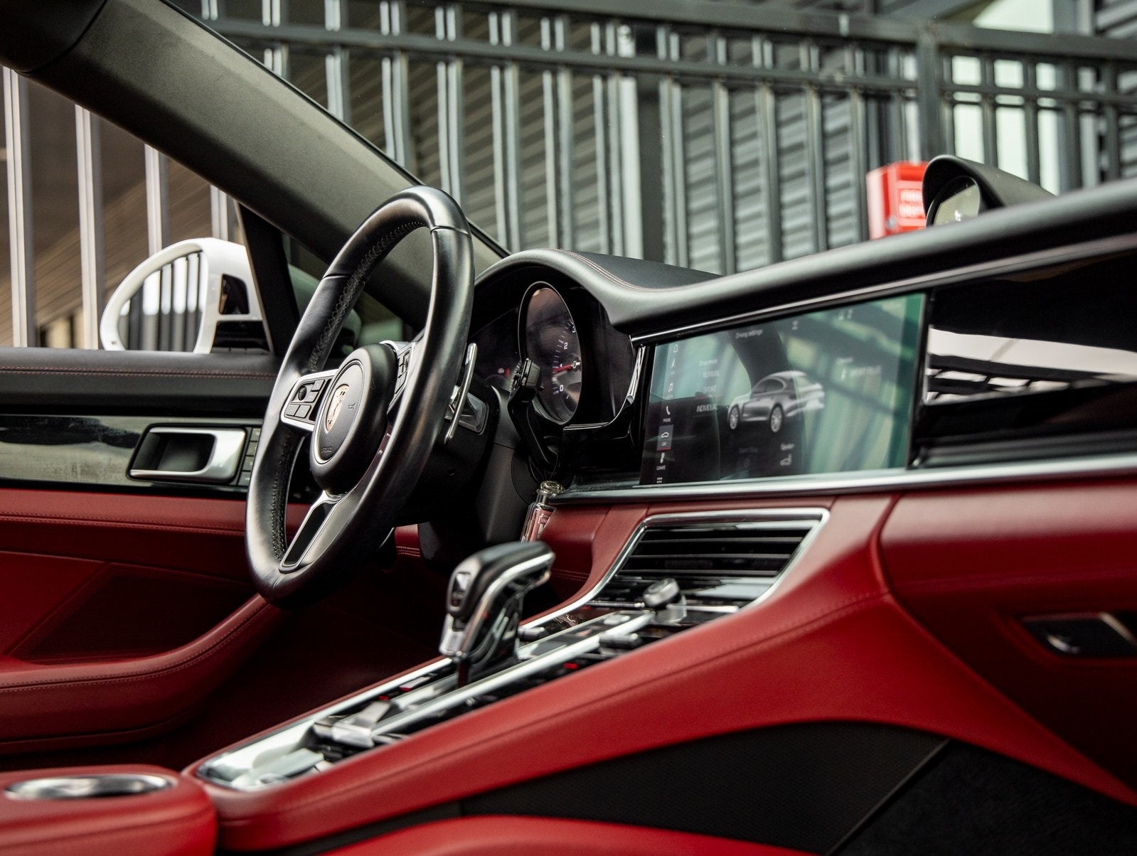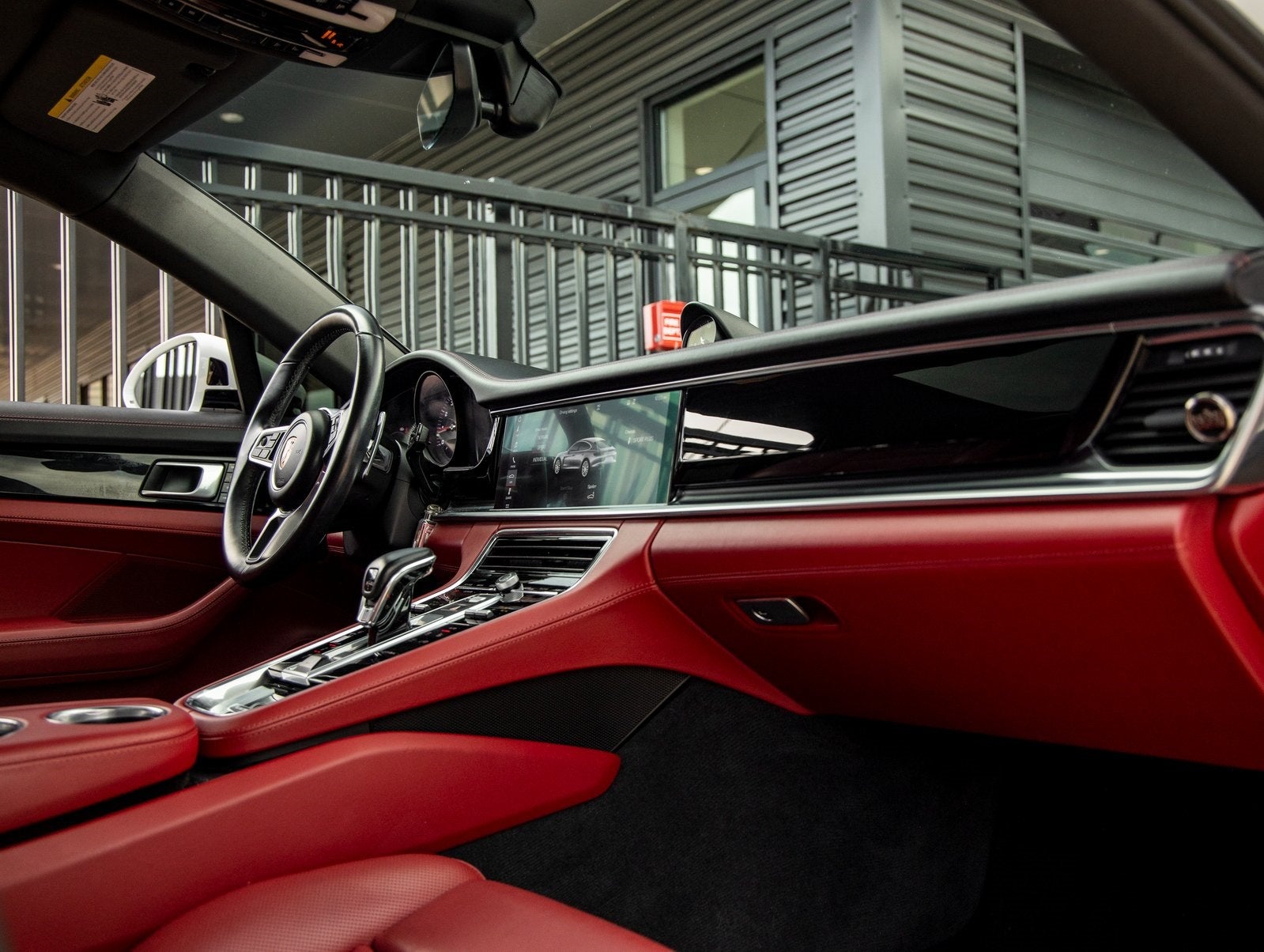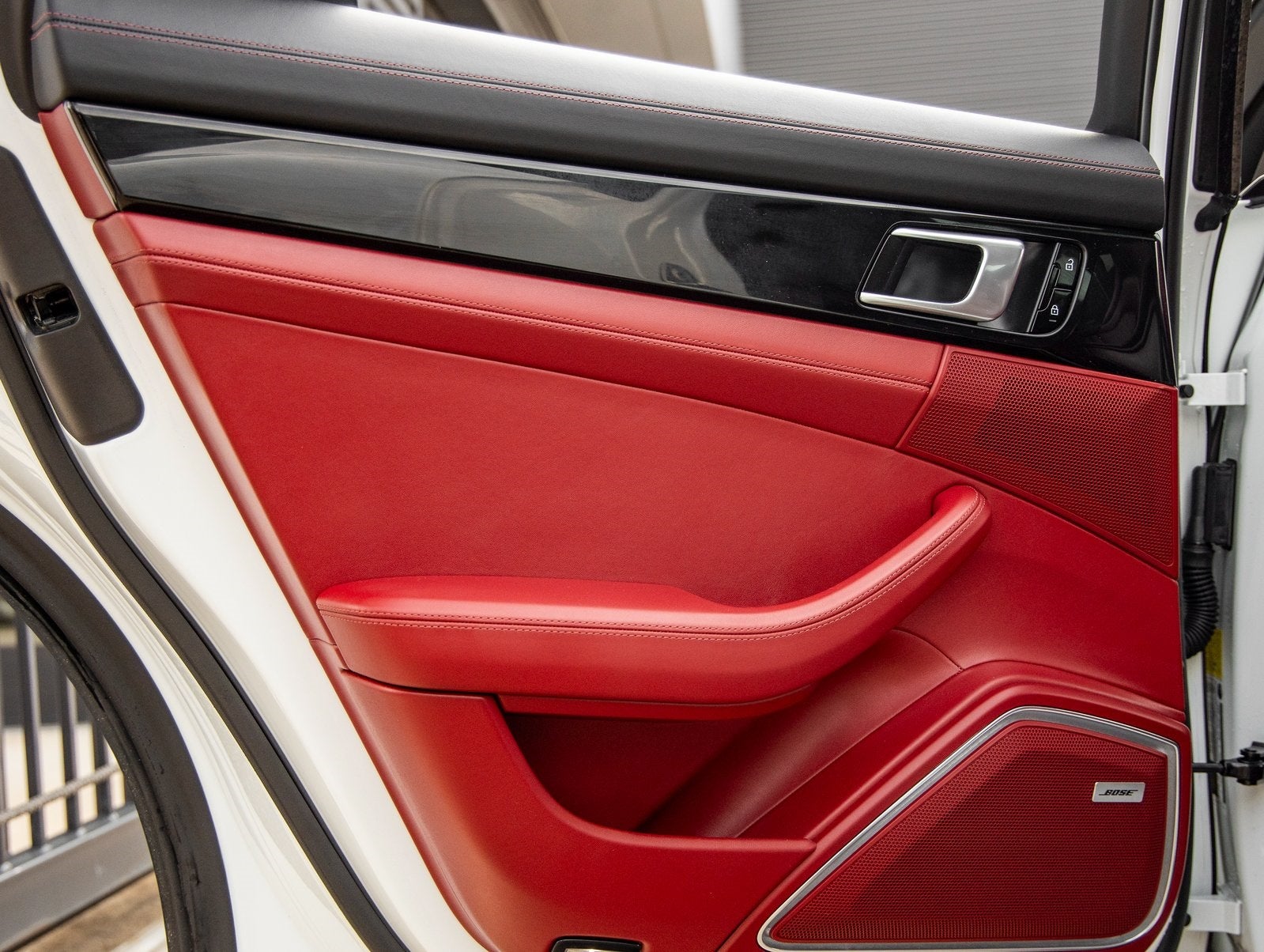 Step inside and the Leather Interior in Black/Bordeaux Red greets you, exuding an air of luxury that only Porsche can deliver. The 14-Way Power Seats with Memory Package ensure tailored comfort, while Seat Heating (Front and Rear) and Front Seat Ventilation provide year-round refinement. The Porsche Crest on Headrests (Front and Rear), Ambient Lighting, and Heated Steering Wheel elevate the cabin with bespoke detail. A BOSE Surround Sound System and 4-Zone Climate Control ensure every passenger enjoys first-class accommodations.
