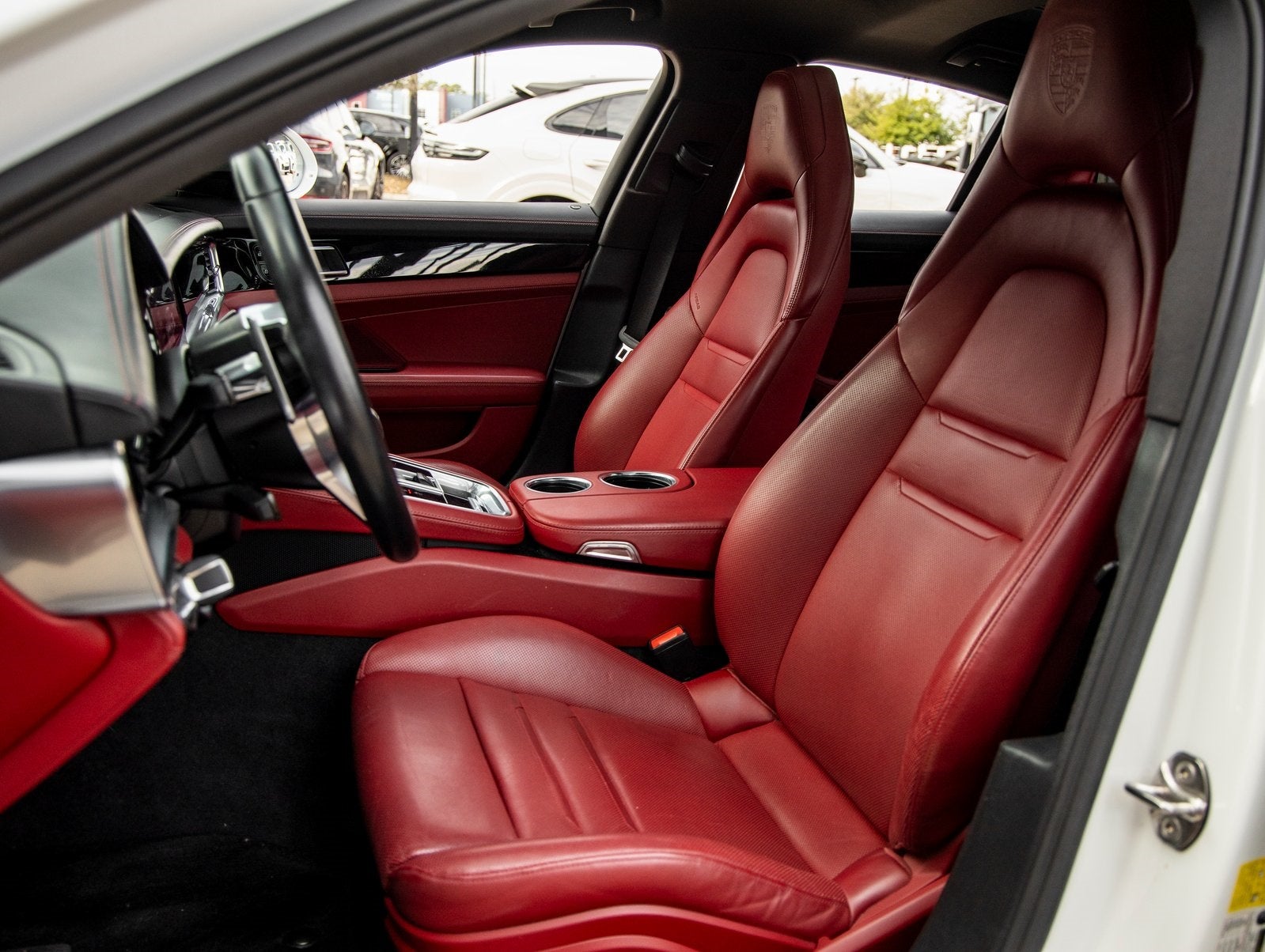 The Panamera stands as a beacon of executive design and dynamic capability, its White exterior not just a color, but a statement of timeless sophistication. Adorned with 21 SportDesign Wheels and LED Headlights including Porsche Dynamic Light System (PDLS), it presents a commanding yet refined presence. Door Handle Inlays Painted in Exterior Color and Wheel Center Caps with Colored Porsche Crest enhance its cohesive and distinguished aesthetic, while Soft Close Doors add an extra layer of premium craftsmanship.