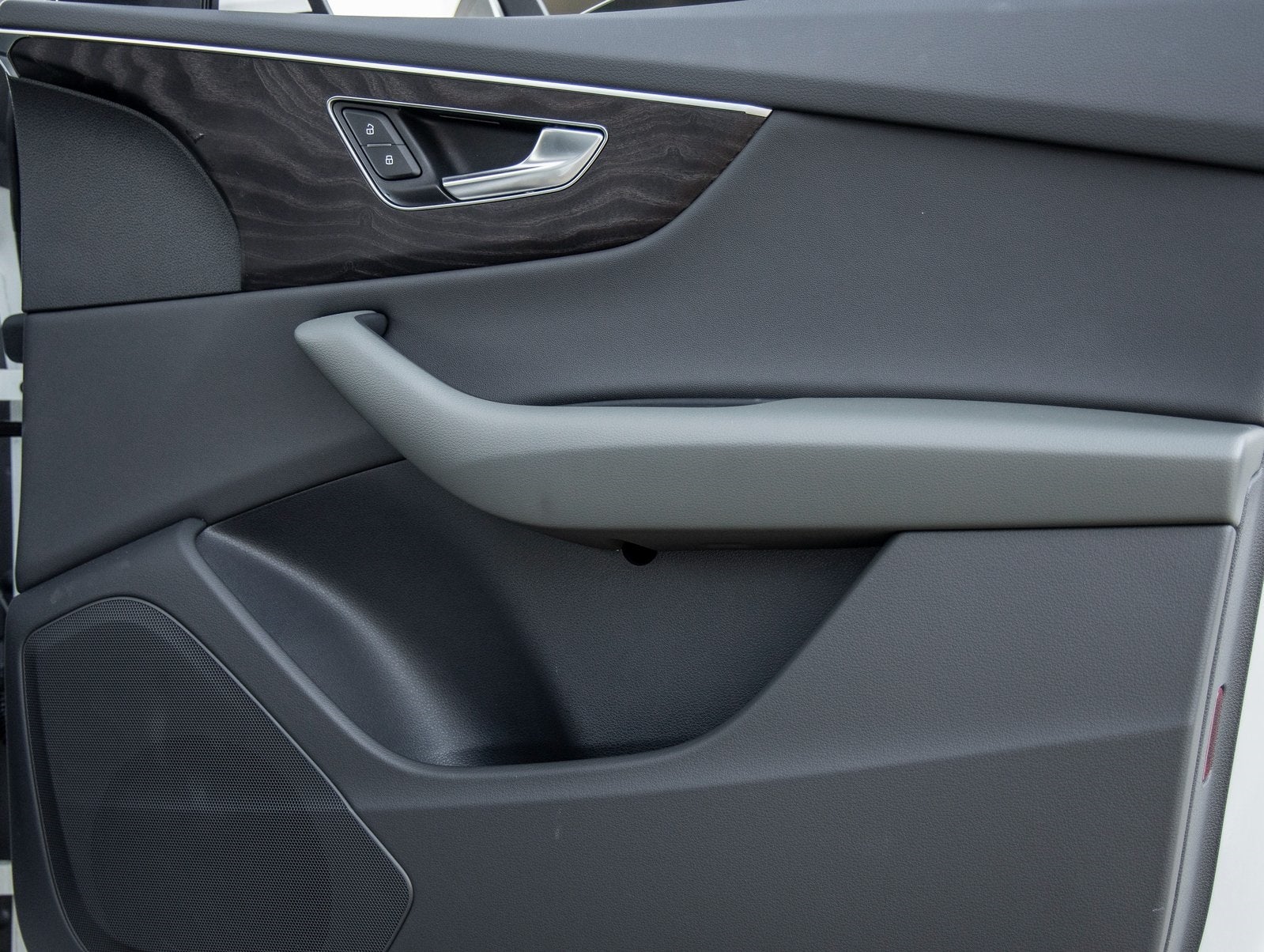 The Q8s coupe-like silhouette combined with the functionality of a full-size SUV makes it a standout in the Audi lineup. Its expressive front grille, sleek LED headlights, and sculpted body lines highlight Audis modern design language. The Carrara White finish enhances its clean and contemporary aesthetic, while 20-inch alloy wheels and subtle chrome accents add a touch of elegance.