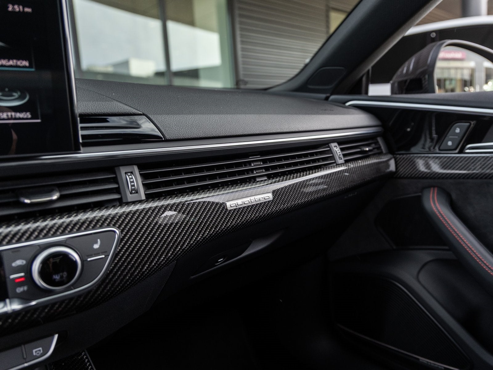 • Brake Calipers in Red: A bold performance accent that highlights the RS 5s high-performance braking system.