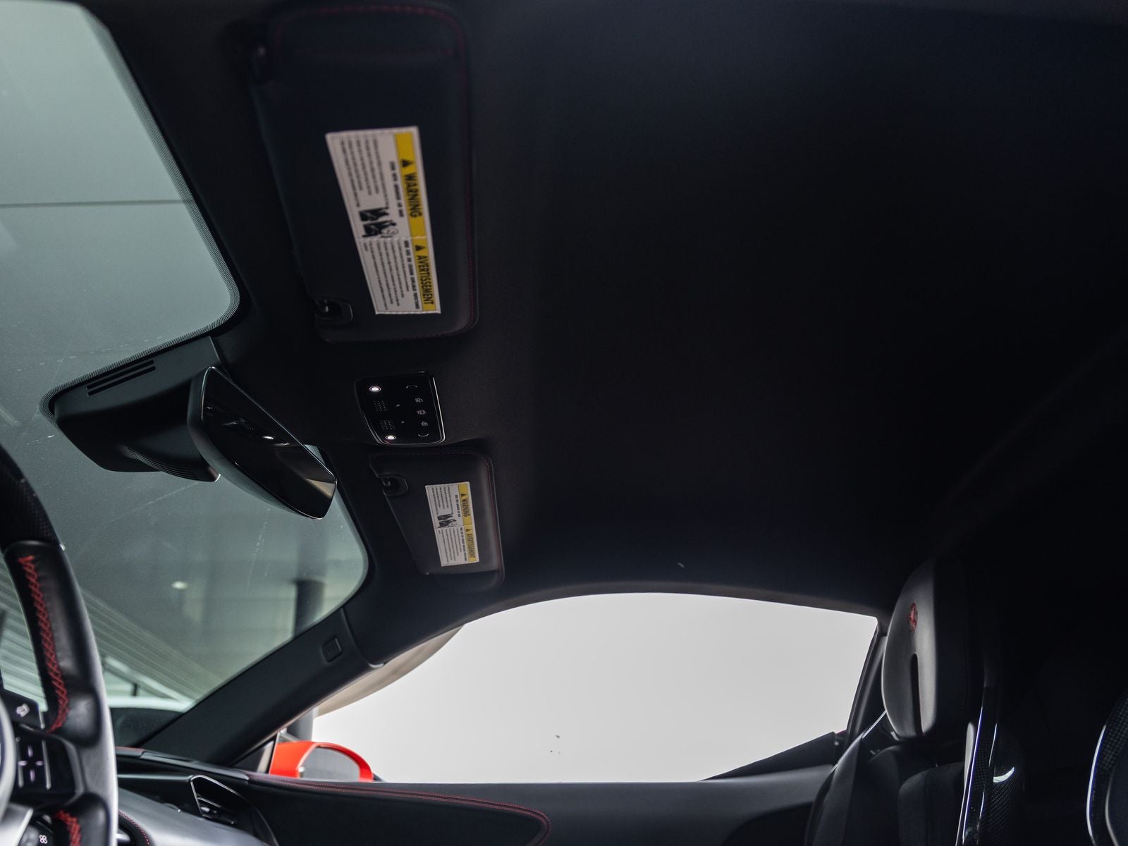 Step inside and the Nero interior greets you, exuding an atmosphere of performance-focused luxury. Carbon Fibre Racing Seats (Size XL) provide exceptional support, while Alcantara seat inserts and Rosso contrast stitching elevate the cabins bespoke character. The Cavallino stitched on the headrests, Colored Inner Details, and Carbon Fibre trim elements reflect Ferraris dedication to craftsmanship and motorsport heritage. Apple CarPlay and advanced driver-focused technologies ensure modern connectivity within this high-performance cockpit.