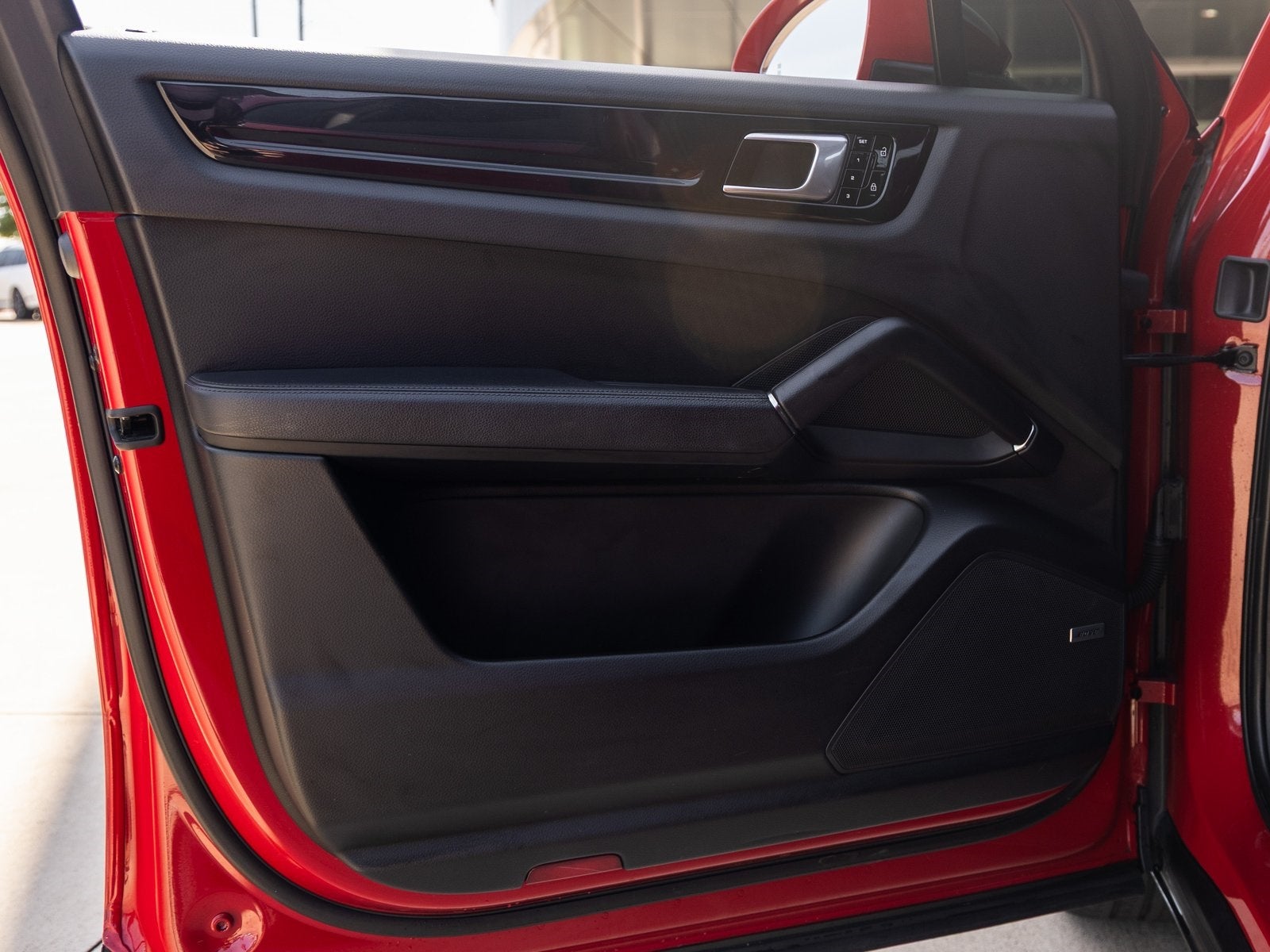 The Cayenne makes a bold impression with its Carmine Red exterior, accentuated by 22 Cayenne Sport Classic Wheels in High Gloss Black with Wheel Arch Extensions in Exterior Color. Design highlights include LED-Matrix Design Headlights with Porsche Dynamic Light System Plus (PDLS+), a Panoramic Roof System, Roof Rails and Window Trim in High Gloss Black, and Sport Tailpipes in Blackeach detail reinforcing its athletic and upscale presence.