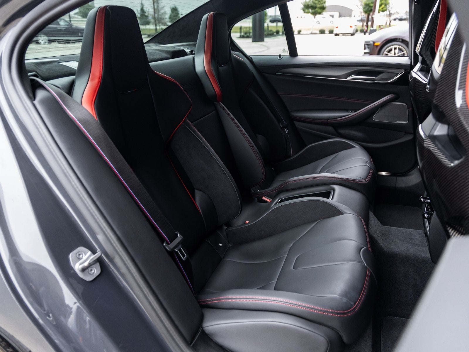 The M5 CS stands as a beacon of design and performance, its Grey Metallic exterior not just a color, but a statement of bold elegance fused with motorsport heritage. Featuring Red Brake Calipers and a host of carbon fiber elements including the Carbon Fiber Roof, Carbon Fiber Rear Lip Spoiler, Carbon Fiber Front Lip, Carbon Fiber Door Mirrors, and Carbon Fiber Kidney Grilles this M5 CS delivers both weight savings and an aggressive visual identity.