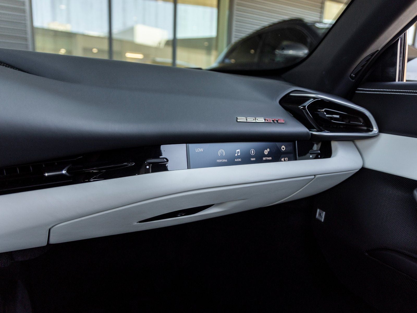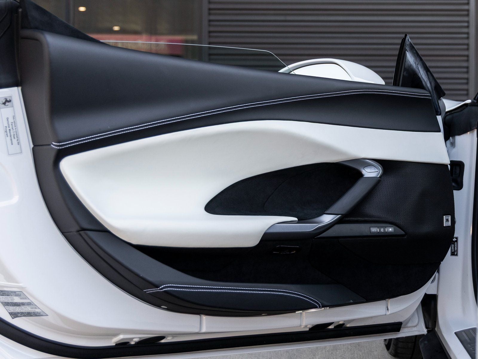 Step inside and the White Leather interior greets you, exuding an atmosphere of tailored luxury blended seamlessly with motorsport DNA. Special Leather upholstery, Cavallino Stitched on Headrests, and Coloured Inner Details elevate the cabins bespoke character. The Carbon Fibre Upper Tunnel Trim and Carbon Fibre Steering Wheel with LEDs bring Formula 1-inspired technology directly to your fingertips, while the Leather Headliner and Electrochromic Rear-View Mirror reflect meticulous attention to detail.