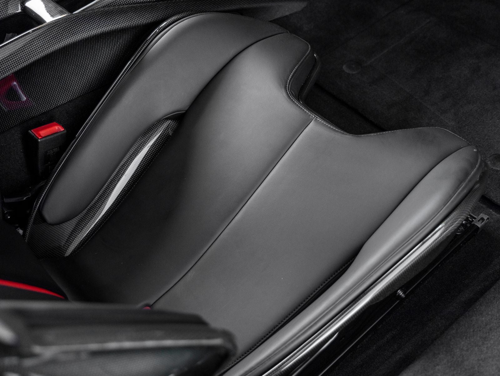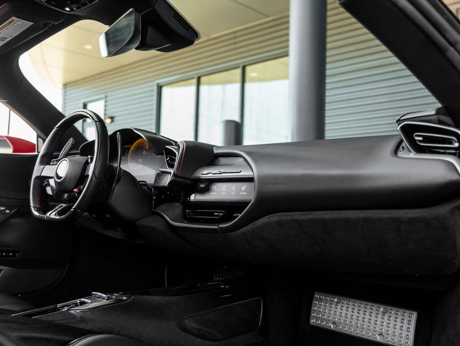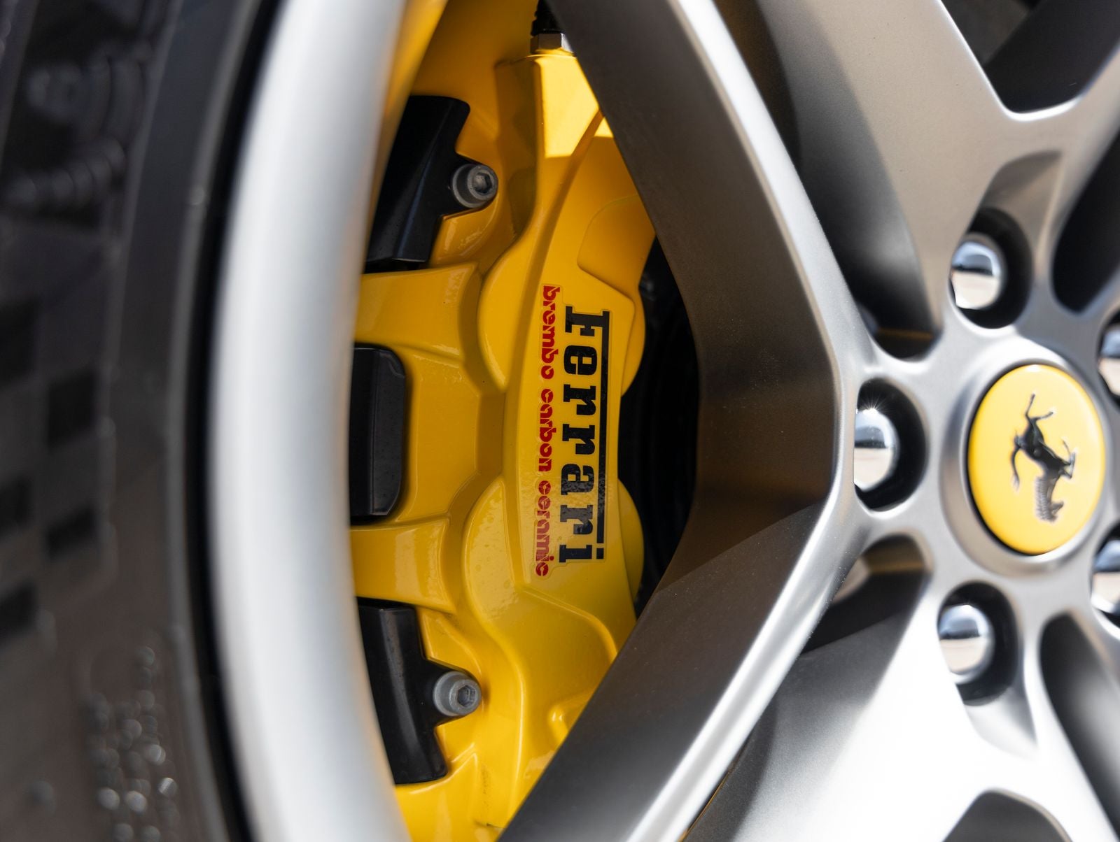 Step inside and the Nero interior greets you, exuding an air of luxury that only Ferrari can deliver. The Carbon Fibre Racing Seats (Large Size) provide both comfort and support, while Cavallino Stitched on Headrests and Rosso Ferrari interior accents add a bespoke touch. The Upper Part of Centre Console in Carbon Fibre and Coloured Special Stitching in Rosso 0504 further enhance the cabins refined, performance-driven atmosphere.