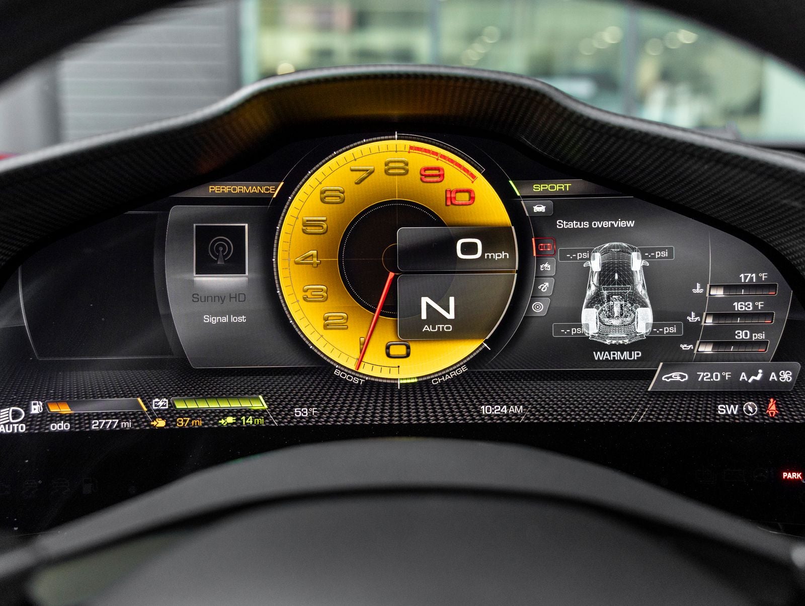 Engine and Performance: At the heart of this mechanical masterpiece is a revolutionary 4.0-liter twin-turbocharged V8 paired with a tri-motor hybrid system, delivering a staggering 986 horsepower and 590 lb-ft of torque from the combustion engine alone. This advanced powertrain is paired with an 8-speed dual-clutch transmission, providing instantaneous shifts and electrified performance. Equipped with the Fiorano Package and Extended Fiorano Package, this SF90 is engineered for maximum performance, incorporating weight-saving measures and enhanced handling dynamics for both track and road dominance.