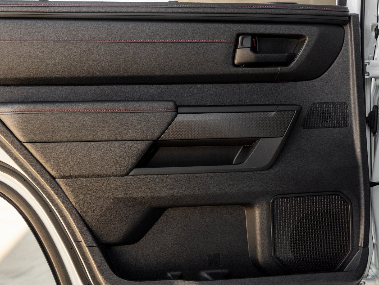 Step inside and the Black interior greets you, exuding an air of durability and modern comfort. Premium materials are matched with TRD Pro branding throughout, including TRD-embroidered headrests, red contrast stitching, and all-weather floor mats. The large infotainment display with Apple CarPlay and Android Auto, along with a premium audio system, ensures you stay connected and entertained on any adventure.