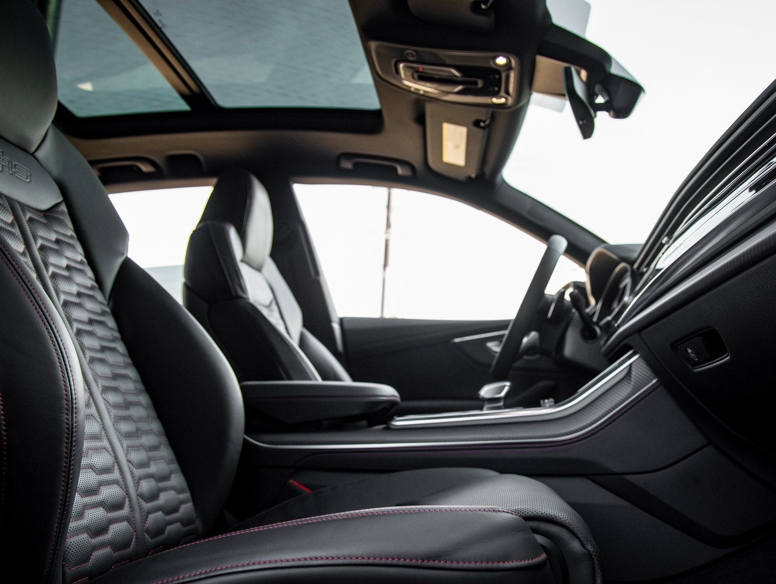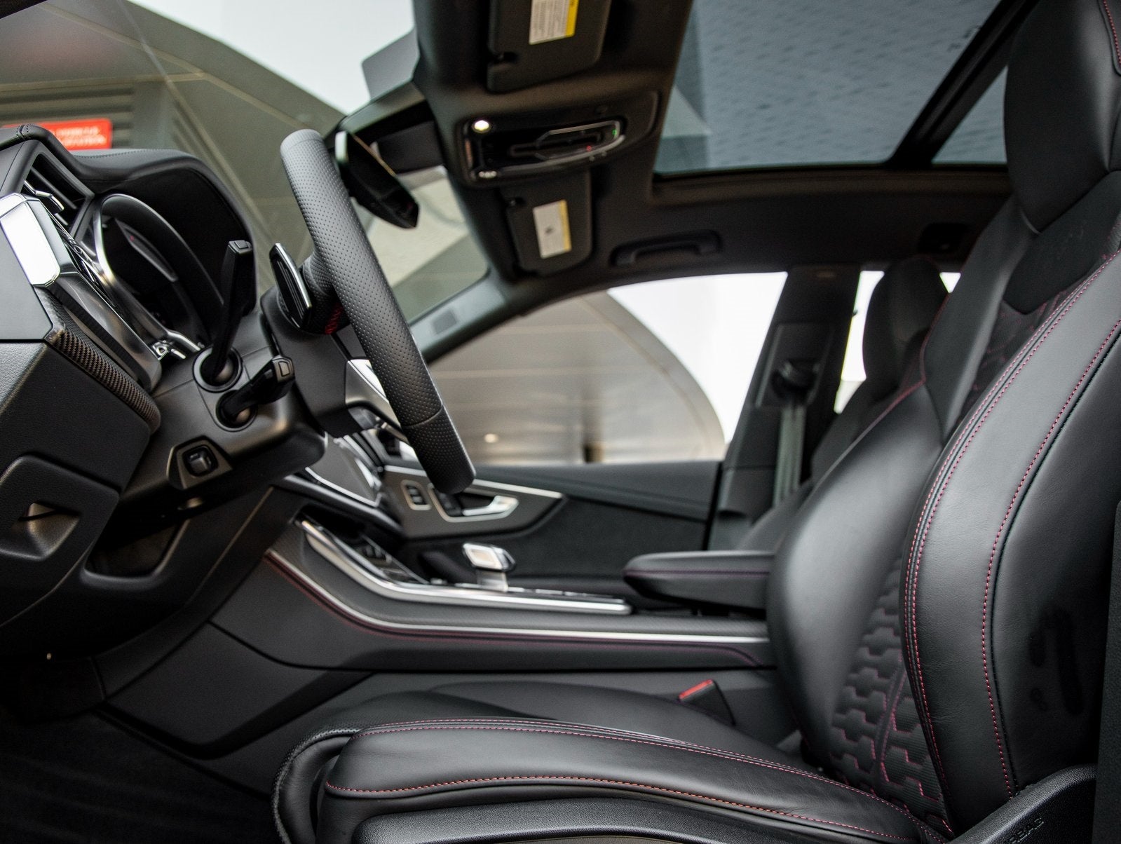 • Black Optic Package: Enhances the RS Q8s bold presence with gloss black exterior accents and exclusive styling elements.