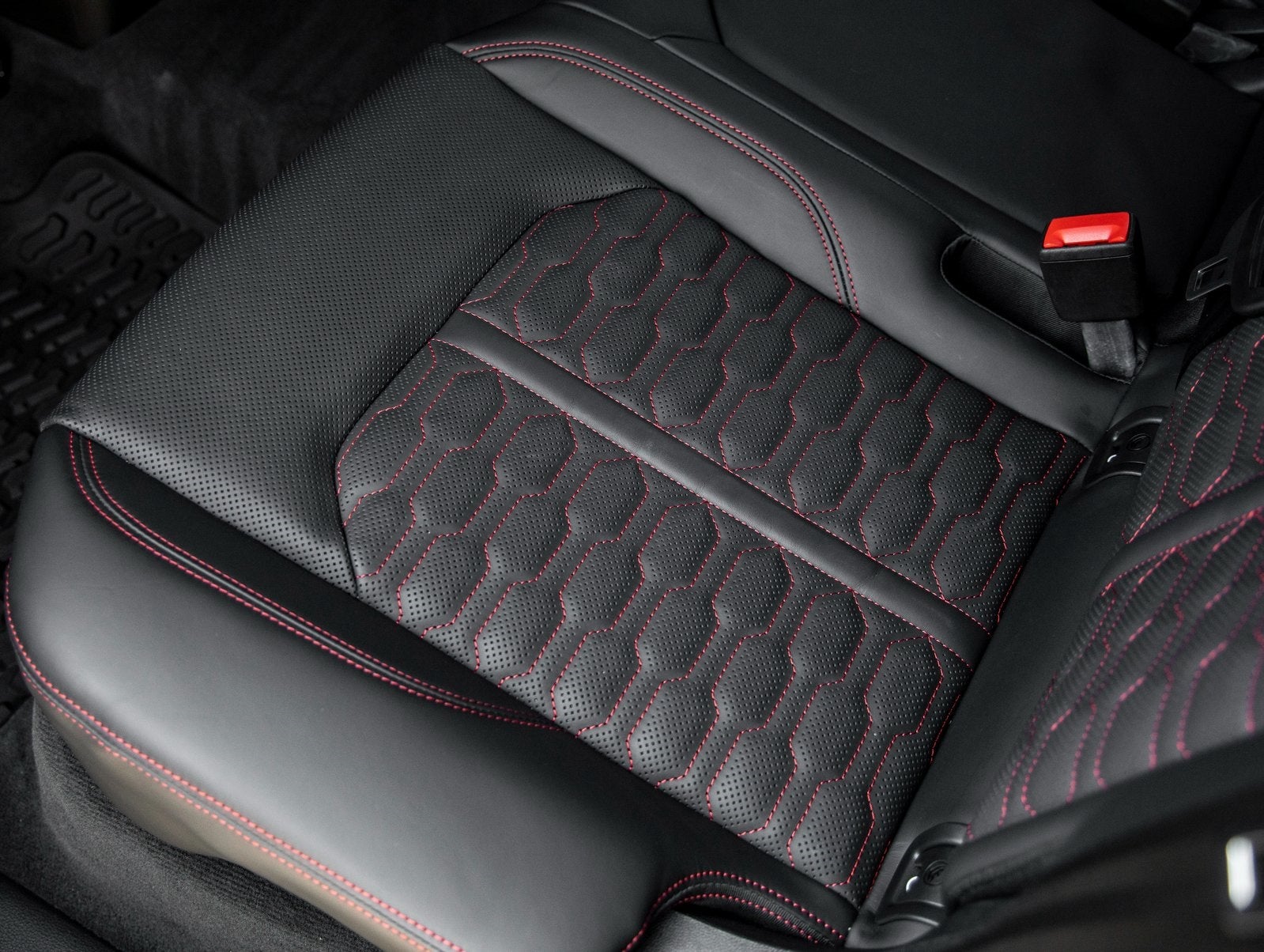 Step inside and the Black interior greets you, exuding an air of luxury that only Audi can deliver. RS Valcona Leather Sport Seats with Honeycomb Stitching provide exceptional comfort and lateral support, while the Alcantara-wrapped steering wheel with RS Mode selector reinforces its motorsport pedigree. Carbon Fiber Inlays and Ambient LED Interior Lighting Plus elevate the cabin atmosphere, and the Audi Virtual Cockpit Plus with RS-specific displays ensures vital performance information is always within view.