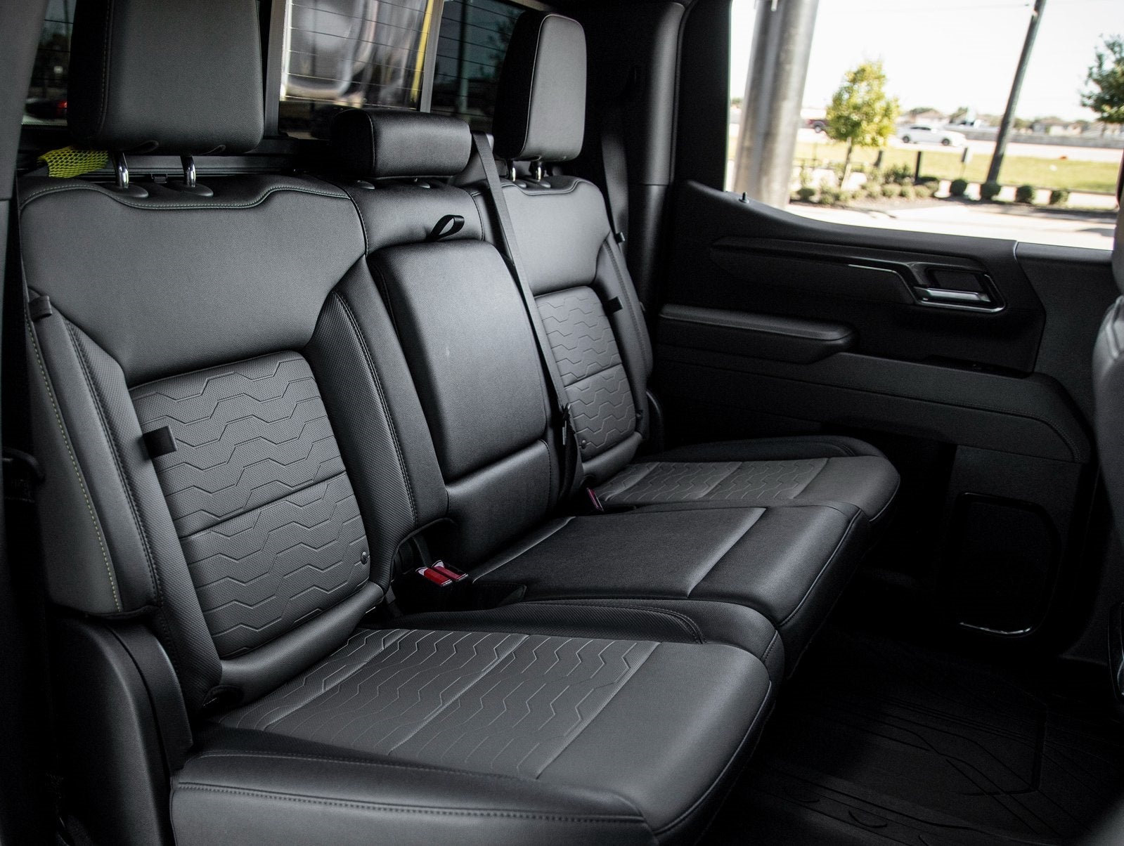 The Silverado ZR2 is engineered for off-road dominance and daily practicality. Its aggressive Black finish is complemented by signature ZR2 styling cues, including unique front and rear bumpers designed for improved clearance, and 18-inch wheels wrapped in 33-inch off-road MT tires. Multimatic DSSV dampers and skid plates add serious off-road credentials, while LED lighting elements ensure visibility no matter the terrain.