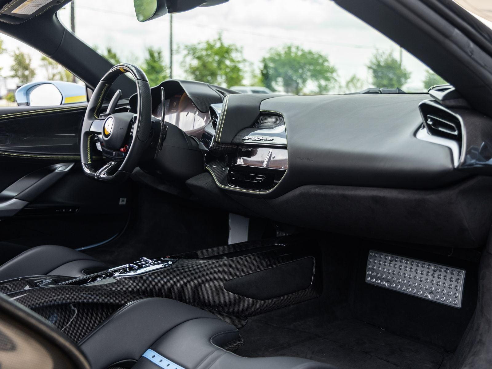 Engine and Performance: At the heart of this hybrid masterpiece is a 4.0-liter twin-turbocharged V8 engine paired with three electric motors, delivering a staggering combined output of 986 horsepower and 590 lb-ft of torque. This advanced system is mated to an 8-speed dual-clutch transmission, launching the SF90 Spider from 0-60 mph in just 2.5 seconds. Equipped with the Fiorano Package, Magnetorheological Suspension, and Ferraris eSSC electronic control systems, this Spider delivers unmatched precision, speed, and open-air exhilaration.