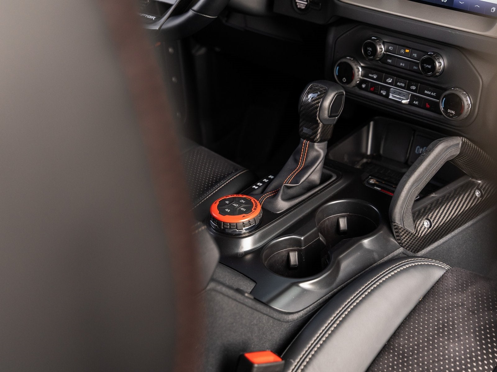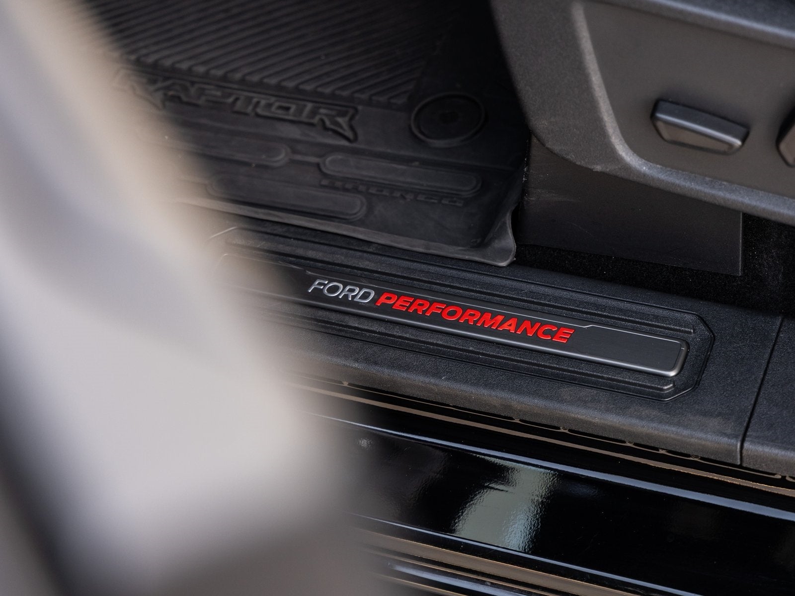 The Bronco Raptor stands apart with an aggressive stance and purpose-built design, engineered to conquer the most demanding terrain. Its Shadow Black exterior is complemented by 17-inch Black Forged Beadlock-Capable Wheels wrapped in massive 37-inch all-terrain tires, reinforced steel bumpers, full metal bash plates, and rigid LED fog lamps. Advanced HOSS 4.0 suspension with FOX Live Valve dampers, front and rear locking differentials, and removable rock rails ensure this Bronco is as capable as it is commanding.