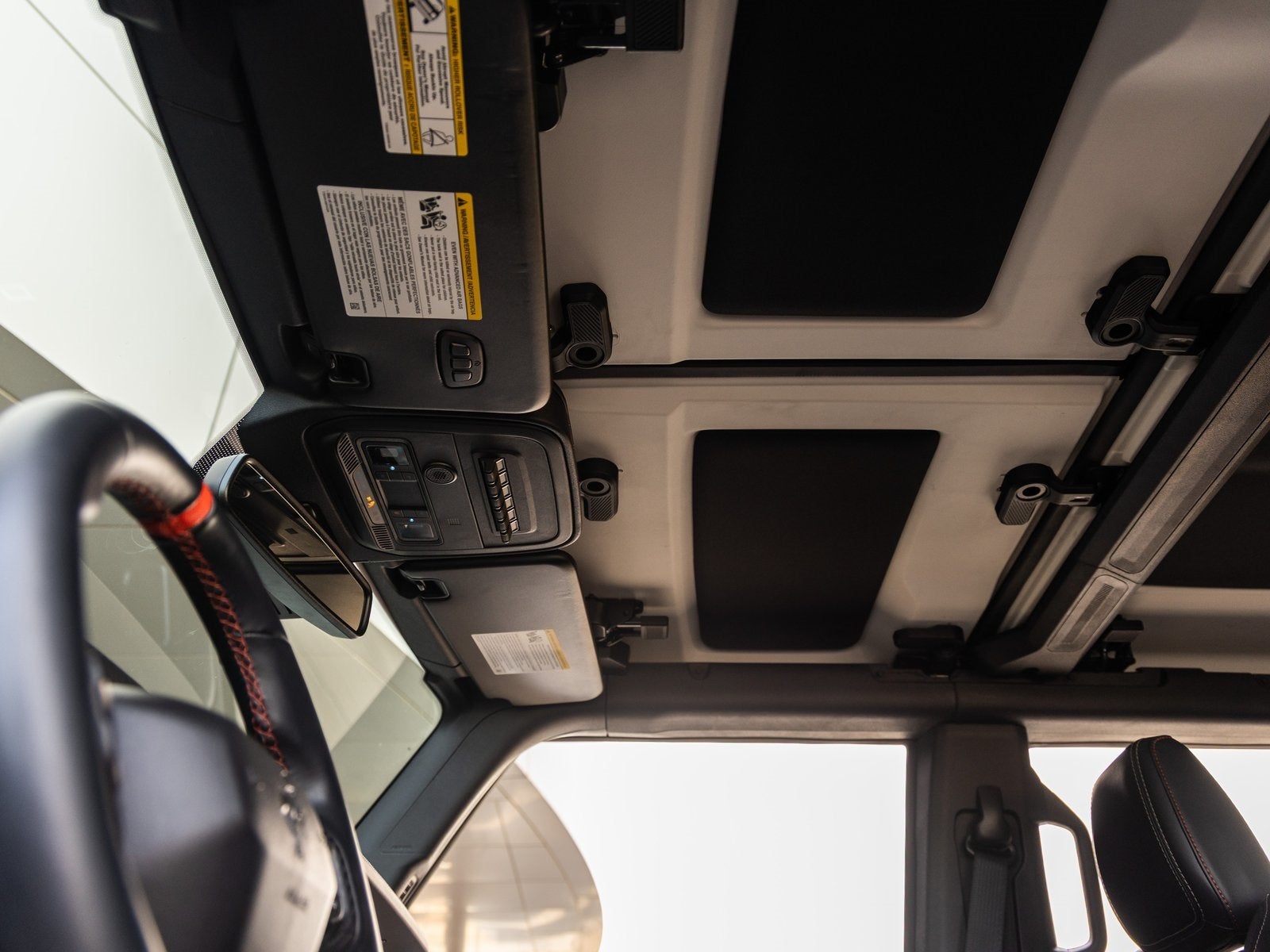 Step inside and the Onyx Leather-Trimmed and Suede interior welcomes you with a rugged yet refined atmosphere. The digital instrument cluster, leather-wrapped steering wheel with paddle shifters, auxiliary switches with pre-wiring, and MOLLE strap system reinforce its mission-ready cabin. Premium materials, smart storage solutions, and a high-lux equipment package deliver comfort without sacrificing durability.