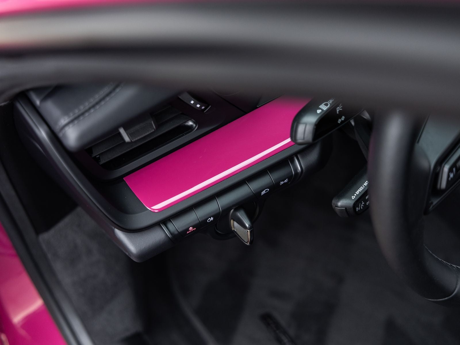 The 911 Carrera T stands as a purists dream, its Ruby Star Neo exterior not just a color, but a bold expression of individuality and motorsport spirit. Adorned with 20/21-inch Carrera Exclusive Design Wheels and the aggressive Aerokit, it presents a striking and aerodynamic stance. The SportDesign Side Skirts and Exclusive Design Tailpipes in Silver further enhance its dynamic appearance, while Porsche Dynamic Light System Plus (PDLS+) ensures precision visibility.