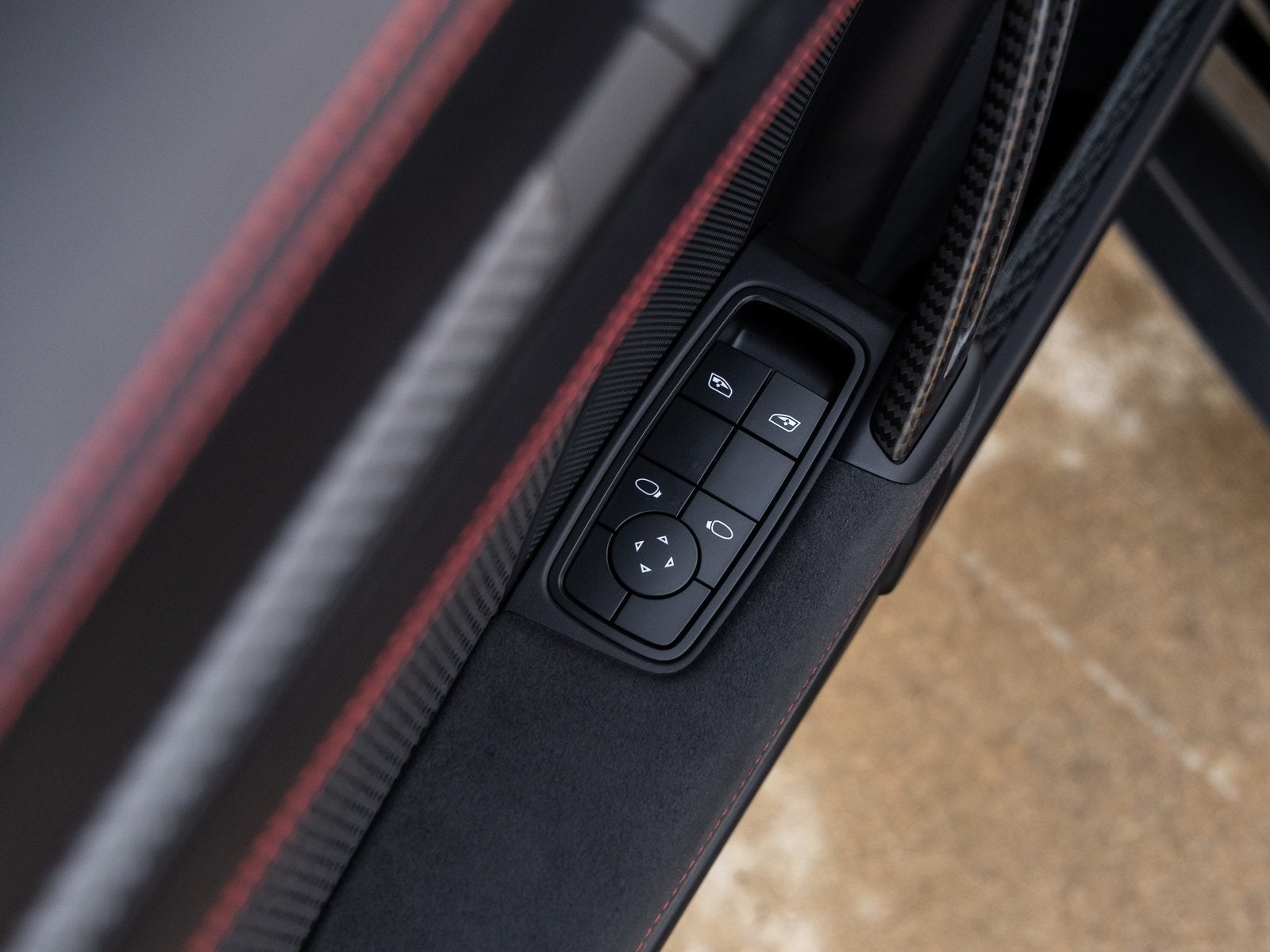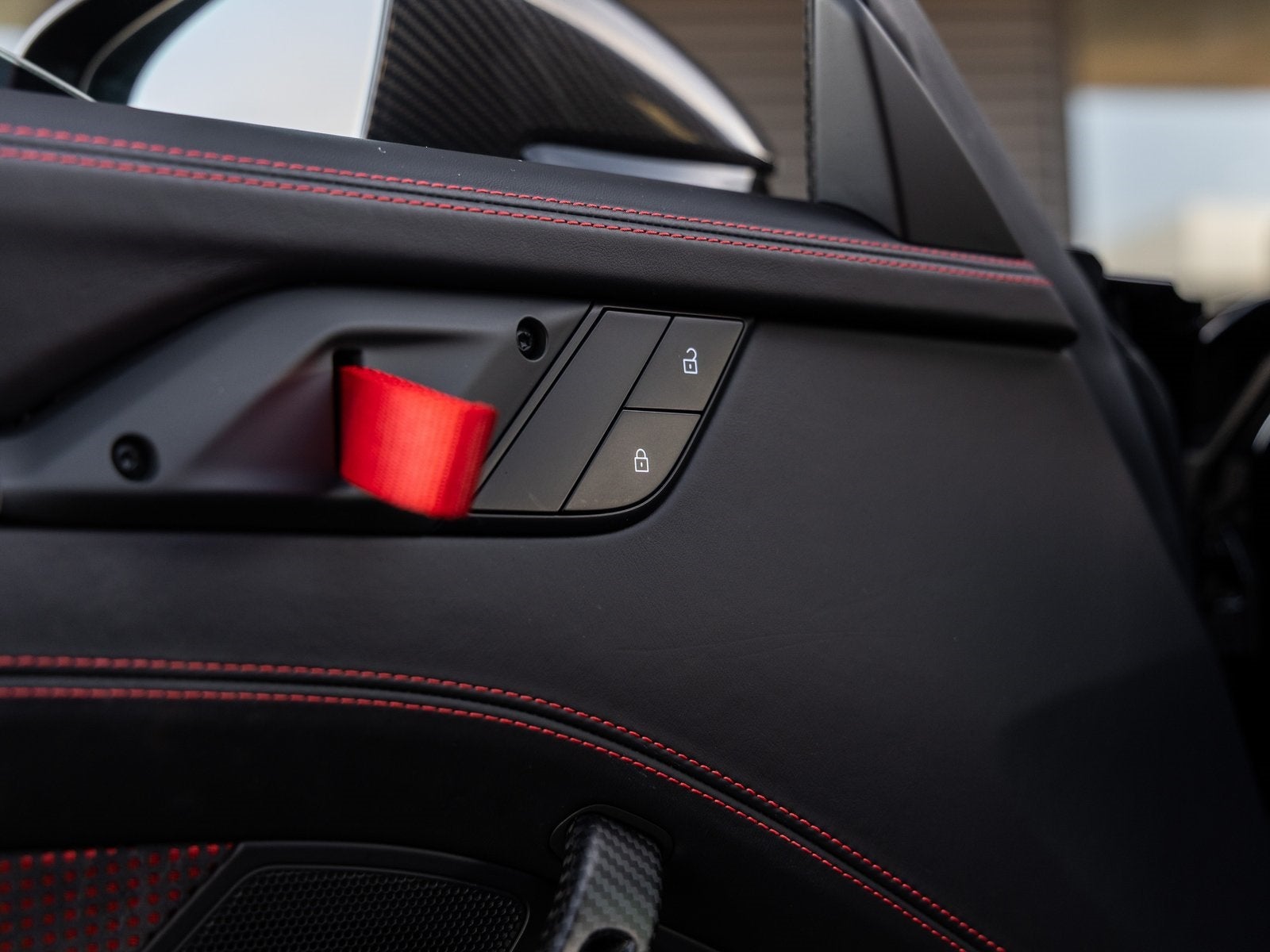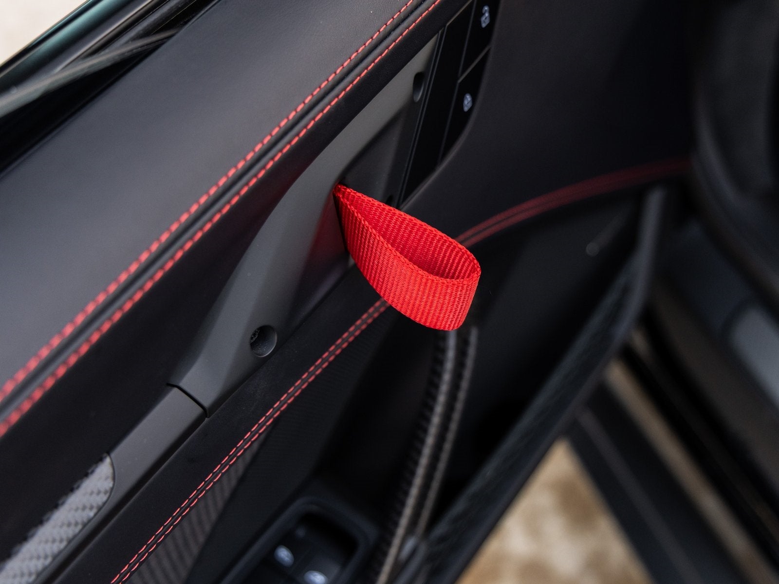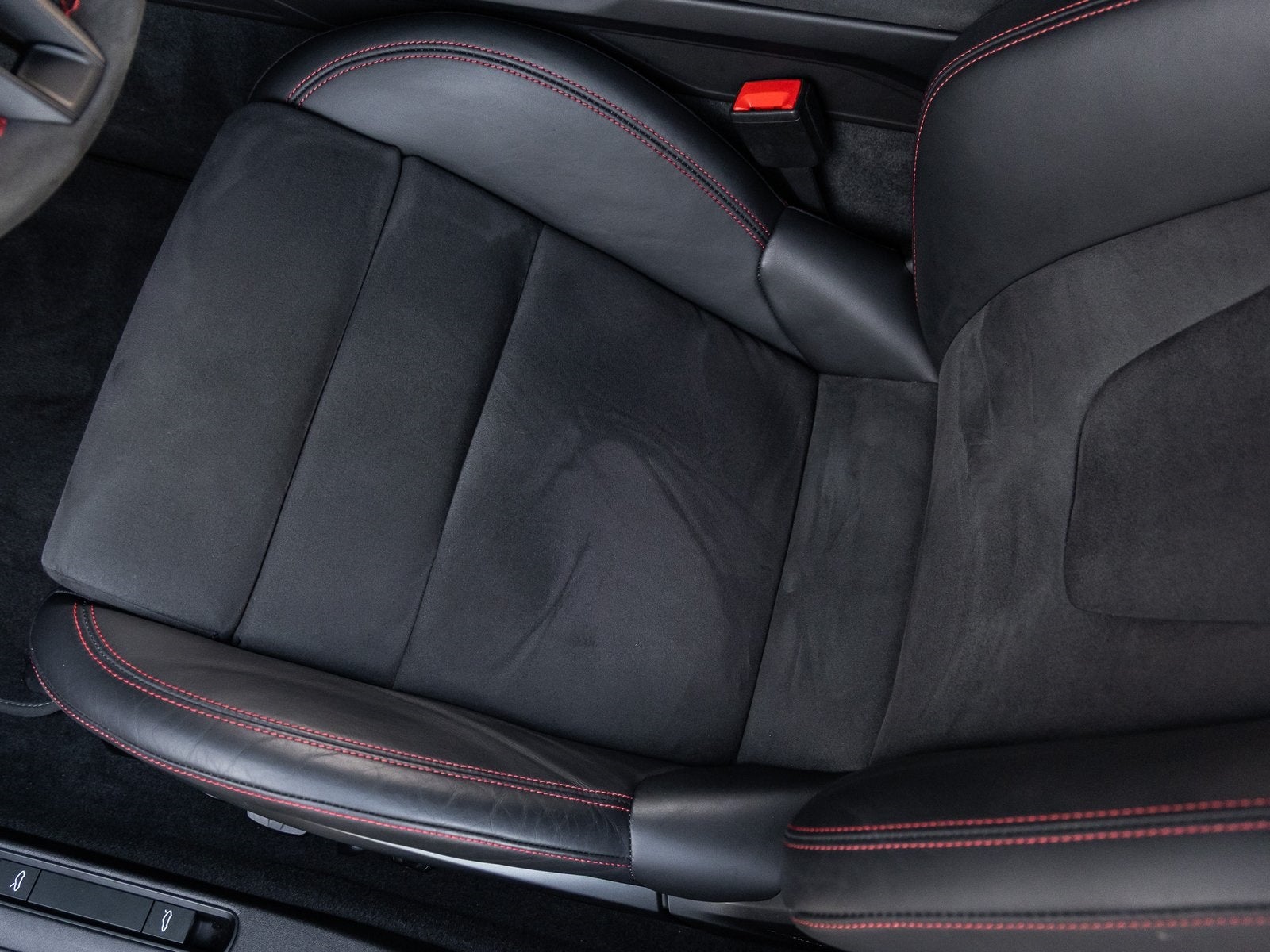 Step inside and you are immersed in a Leather/Race-Tex interior in Black with Guards Red stitching, crafted to keep the driver fully connected to the road or track. Adaptive Sport Seats Plus (18-way) provide exceptional support, while Guards Red accents such as the central tachometer, seat belts, and Chrono stopwatch dial reinforce the motorsport-inspired cockpit. Bespoke illuminated door-sill guards in matte carbon fiber, a Race-Tex center console lid with Porsche Crest, and aluminum pedals and footrest elevate the interior with a purposeful yet luxurious finish.