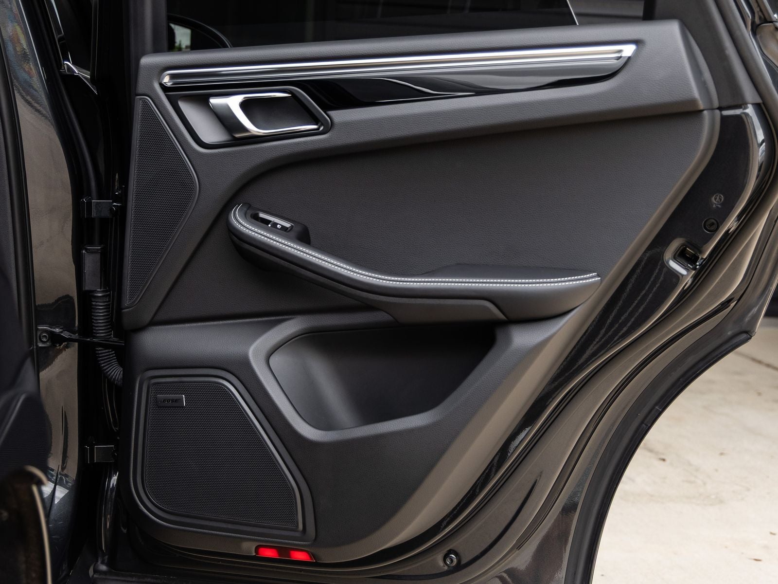 Step inside and the Leather Package in Black with Deviated Stitching in Chalk greets you, exuding an air of premium craftsmanship that only Porsche can deliver. The 14-way Power Seats with Memory Package, Heated Steering Wheel, and Ventilated Front Seats ensure optimal comfort in every condition. A BOSE Surround Sound System enriches the driving experience, while Surround View and Lane Change Assist provide added confidence and convenience behind the wheel.