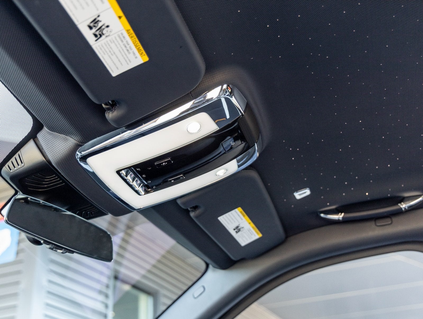 Shooting Star Headliner: A celestial display overhead, simulating falling stars across a bespoke fiber-optic night sky.