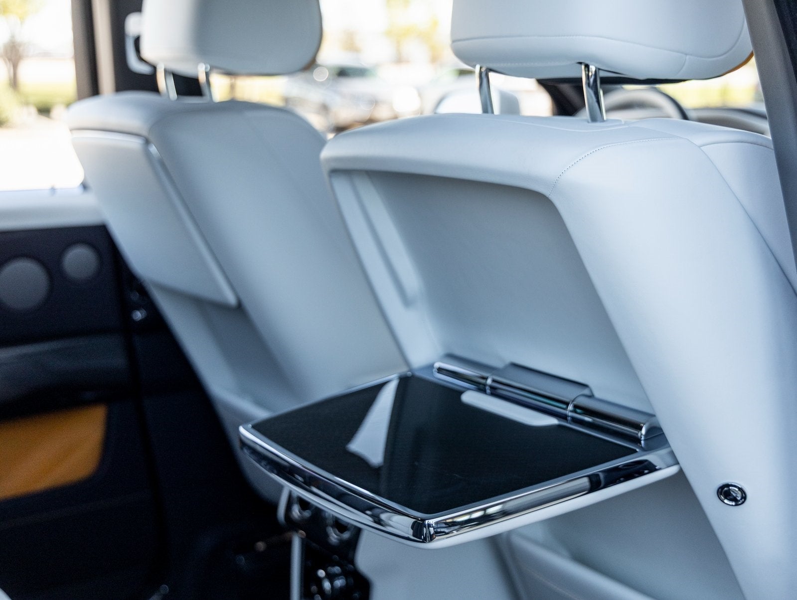 The Cullinan Black Badge is unmistakable, flaunting its boldness with the iconic Black Badge Package, 22 Part Polished Black Badge Wheels, and the striking Shooting Star Headliner. The front grille, Spirit of Ecstasy, and trim elements are cloaked in high-gloss black chrome, amplifying the Cullinans presence with a darker, edgier aesthetic.
