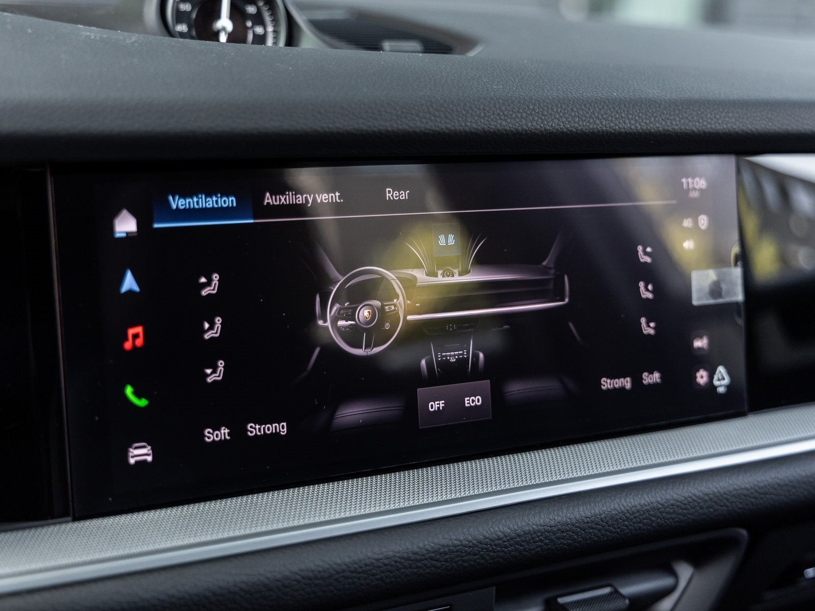 Step inside and the Standard Interior in Black greets you, offering a luxurious retreat wrapped in meticulous Porsche craftsmanship. Comfort is paramount with 14-way Power Seats with Comfort Memory, Heated Rear Seats, and Ventilated Front Seats. The cabin also features a Heated GT Sport Steering Wheel in Leather and Porsche Crest on Headrests, highlighting the attention to detail and sporty character.