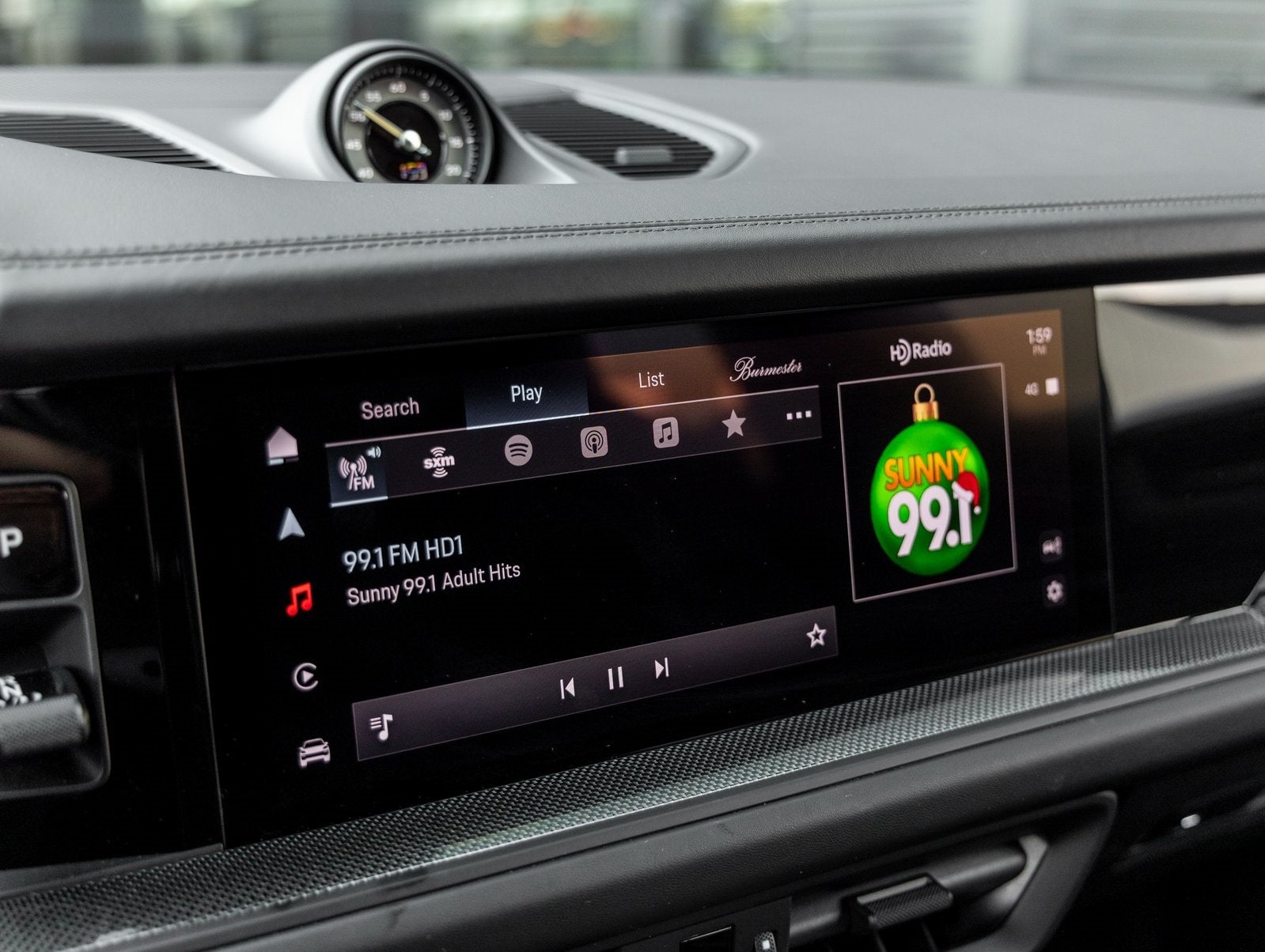 Step inside and you're greeted by a Leather Interior in Black, a space that balances racing-inspired features with luxurious appointments. The Heated GT Sport Steering Wheel in leather with a twelve oclock marker in black reflects the Turbo GTs performance roots. Premium touches include the Porsche Crest on Headrests (Front and Rear), Steering Column Casing in Leather, and Center Console Armrest with Porsche Crest, all exemplifying Porsches commitment to bespoke craftsmanship.