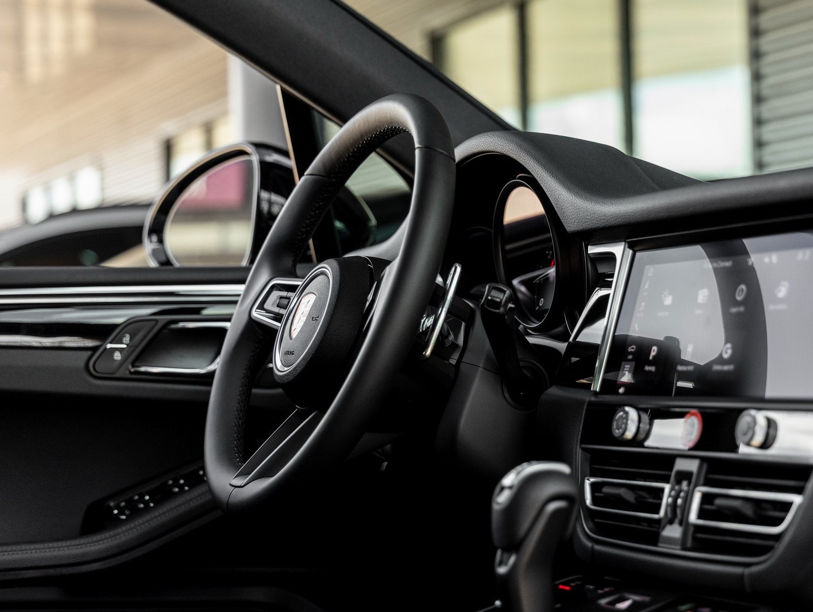 The Macan stands as a beacon of design and performance, its Black exterior not just a color, but a badge of honor that reflects Porsche's illustrious sporting heritage. Adorned with 20 Macan S Wheels in Highly Polished Dark Titanium and LED Headlights including Porsche Dynamic Light System Plus (PDLS+), it presents a commanding stance. Roof Rails in High Gloss Black and Wheel Center Caps with Colored Porsche Crest further elevate its sleek, performance-ready look.