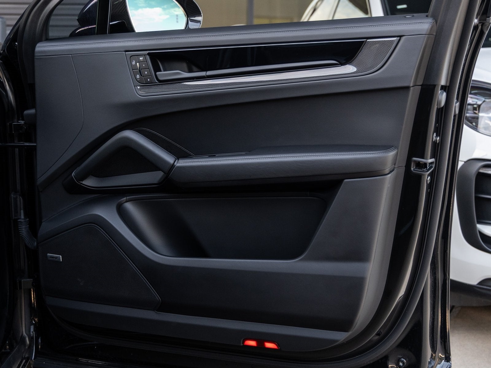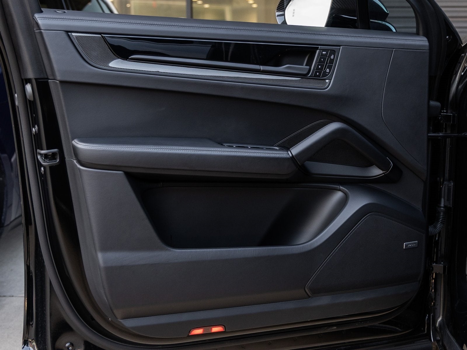 The Cayenne GTS Coupe stands as a beacon of design and performance, its Chromite Black Metallic exterior not just a color, but a badge of honor that reflects Porsche's illustrious engineering prowess. Adorned with 22 Exclusive Design Sport Wheels in Satin Black and the aggressive SportDesign Package in Carbon Fiber, it presents a muscular, road-commanding presence. The Exclusive Design Fuel Cap and Under Door Puddle Light Projectors elevate the experience, adding the final touches of individuality and luxury.