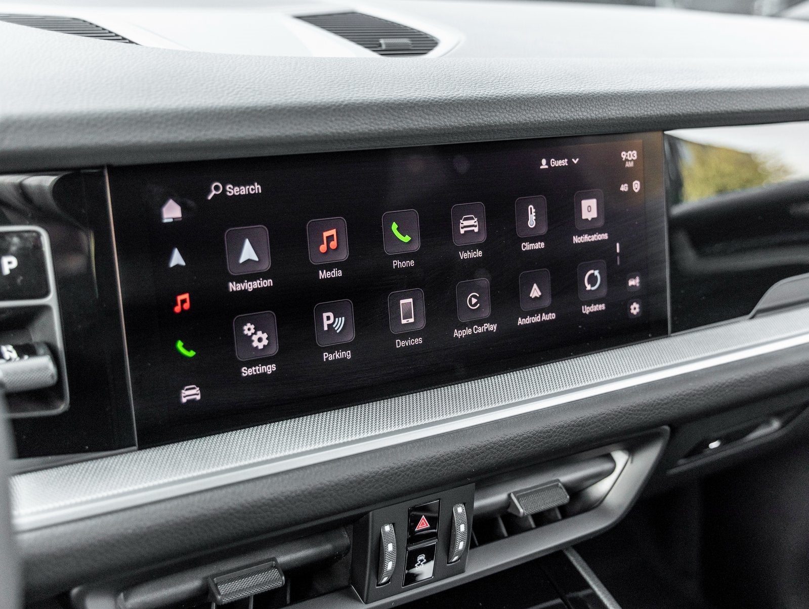 Step inside and the Standard Black Interior greets you, exuding an air of luxury that only Porsche can deliver. Power Seats (14-way) with Comfort Memory, Heated Rear Seats, and Ventilated Front Seats ensure every drive is a tailored experience in comfort. The Porsche Crest on Headrests and Premium Package Plus elevate the sense of exclusivity, while the 4-Zone Climate Control system ensures each occupant enjoys the perfect environment.