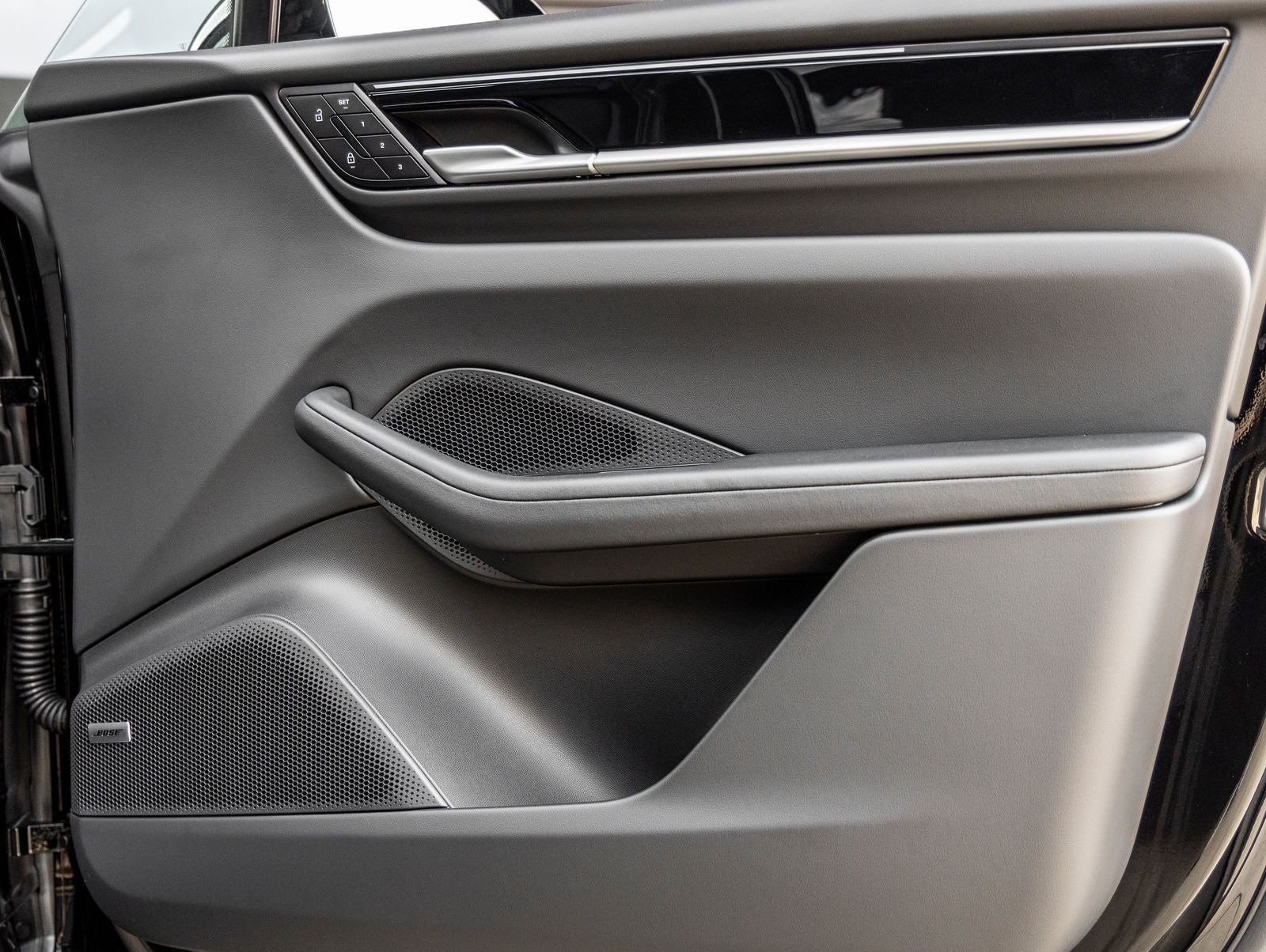 The Macan Electric stands as a beacon of modern design and electrified performance, its Black exterior not just a color, but a statement of timeless elegance and athleticism. Adorned with 22 RS Spyder Design Wheels and LED-Matrix Design Headlights in Black, it presents a bold and futuristic stance. The Premium Package enhances comfort and convenience, while Side Blades in Exterior Color and High Gloss Black Window Trim further refine its sleek, performance-oriented aesthetic.