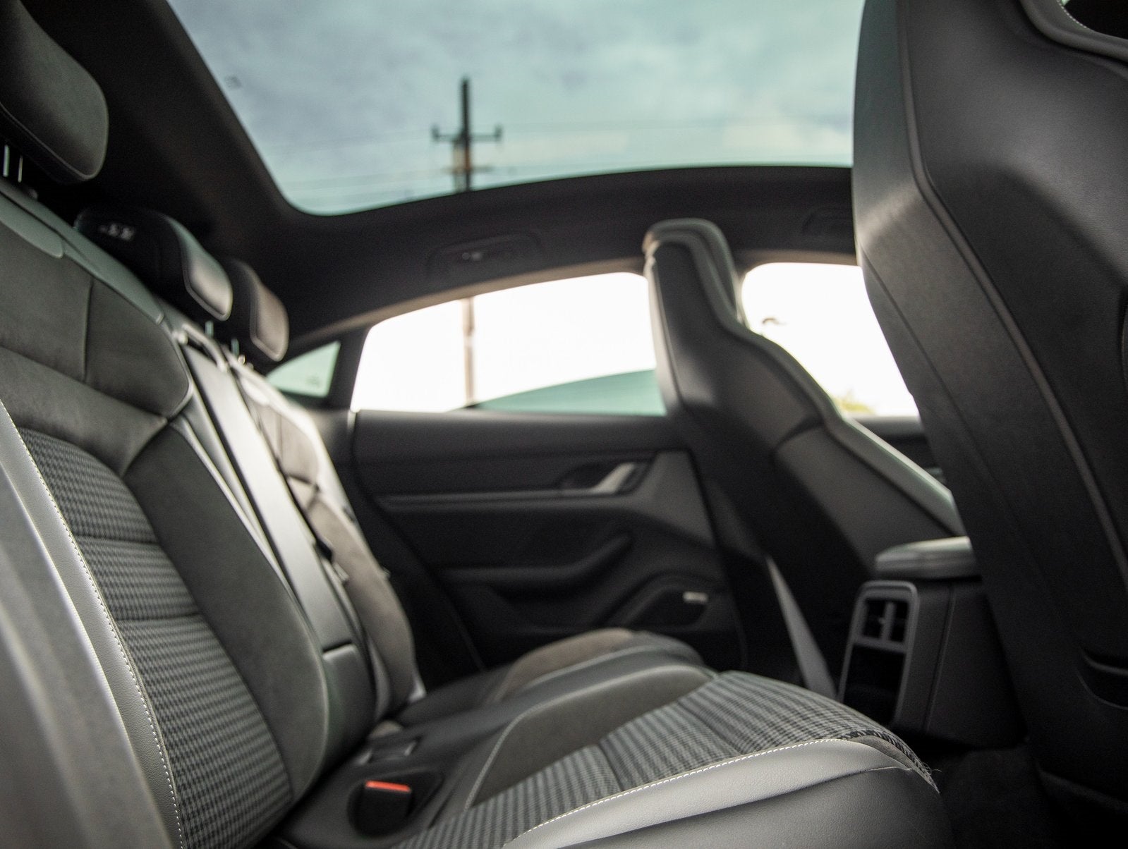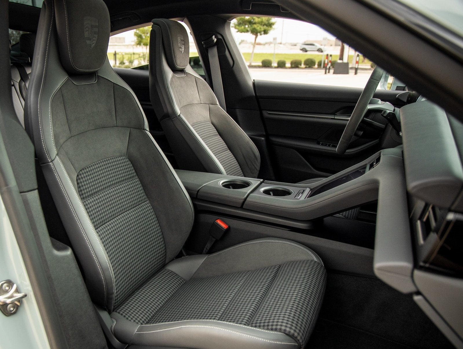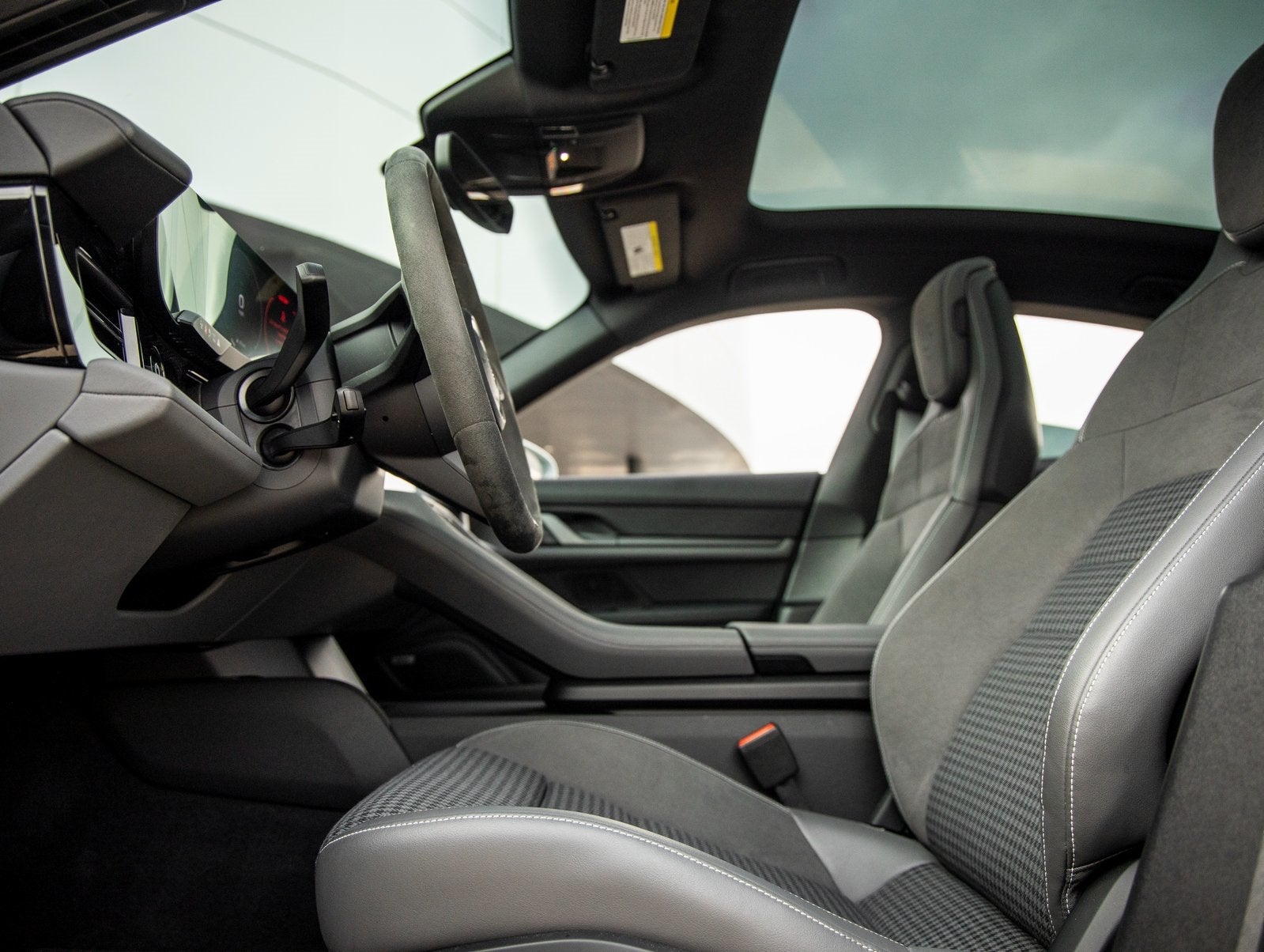 Step inside and the Leather-Free Interior in Slate Grey with Pepita Seat Centers greets you, exuding an air of luxury that only Porsche can deliver. Comfort Seats (14-way) with Comfort Memory, Rear 2+1 Seating, Heated Rear Seats, and Ventilated Front Seats ensure all occupants ride in comfort. Porsche Crest on Headrests (Front), Soft Close Doors, and the Passenger Display enhance the sense of exclusivity and driver-focused elegance.