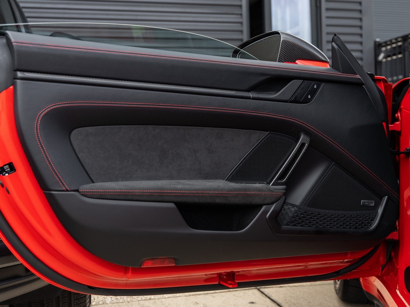 Step inside and the Leather/Race-Tex Interior in Black with Guards Red Stitching greets you, exuding an air of luxury that only Porsche can deliver. The Adaptive Sport Seats Plus (18-way) provide exceptional comfort and support, while Seat Belts in Guards Red and the Chrono Stopwatch Dial and Digital Tachometer in Guards Red punctuate the cabin with a sporty flair. The Center Console Lid in Race-Tex with PORSCHE Logo and BOSE Surround Sound System speak to a bespoke level of craftsmanship and modern refinement.