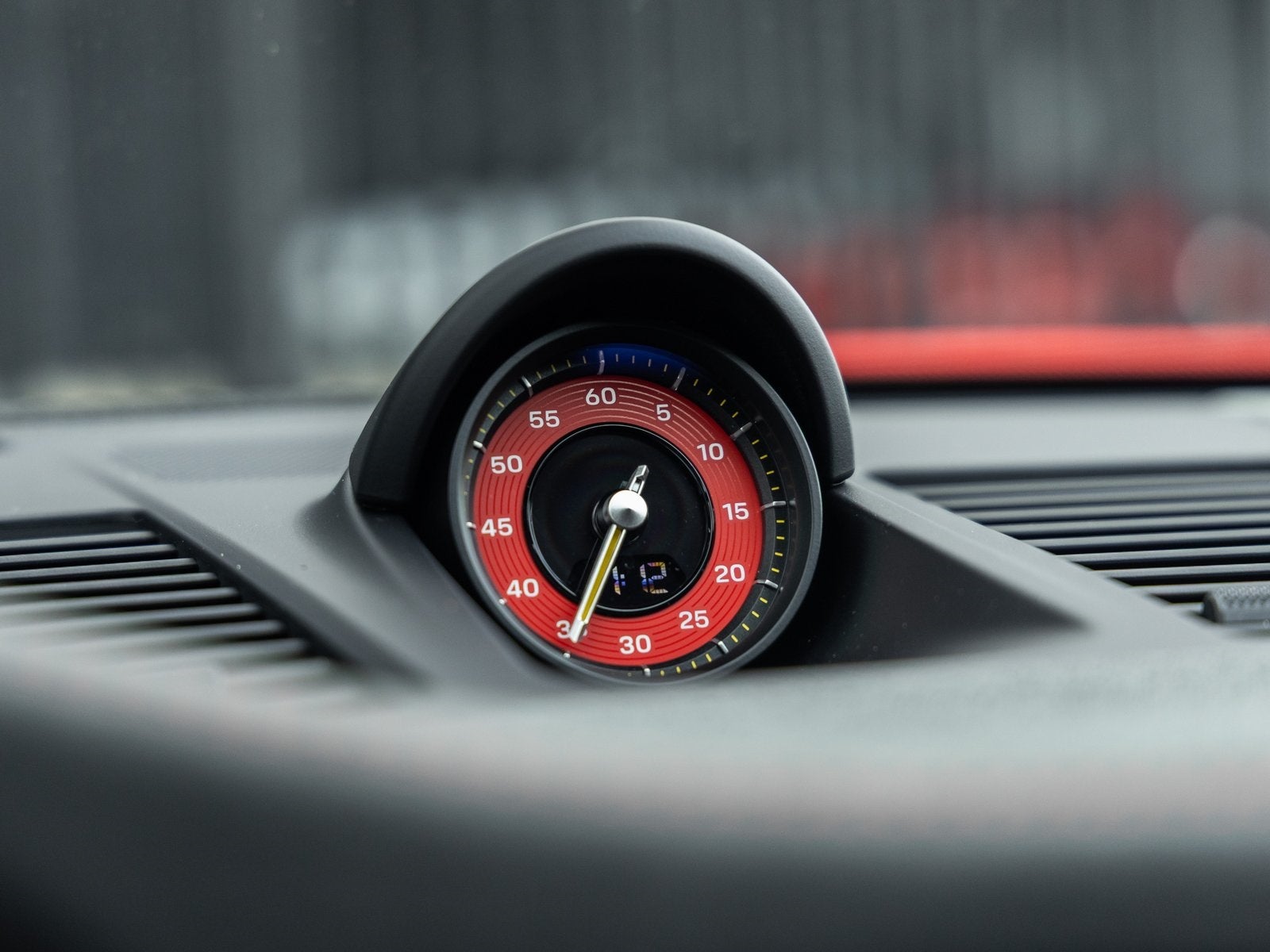 • Chrono Package: Enhancing performance monitoring with advanced timing functions and a distinctive dash-mounted stopwatch.
