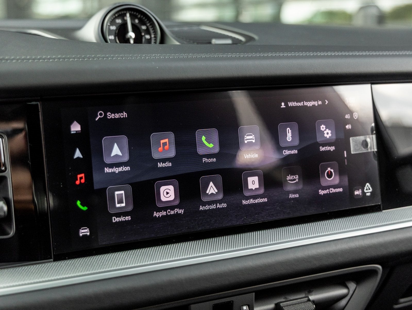 - Radio: Porsche Communication Management (PCM) -inc: navigation module, smartphone compartment w/wireless charging (up to 15 watts), voice control, sound package plus w/10 speakers and a total output of 150 watts and SiriusXM w/360L, including 3 month trial subscription