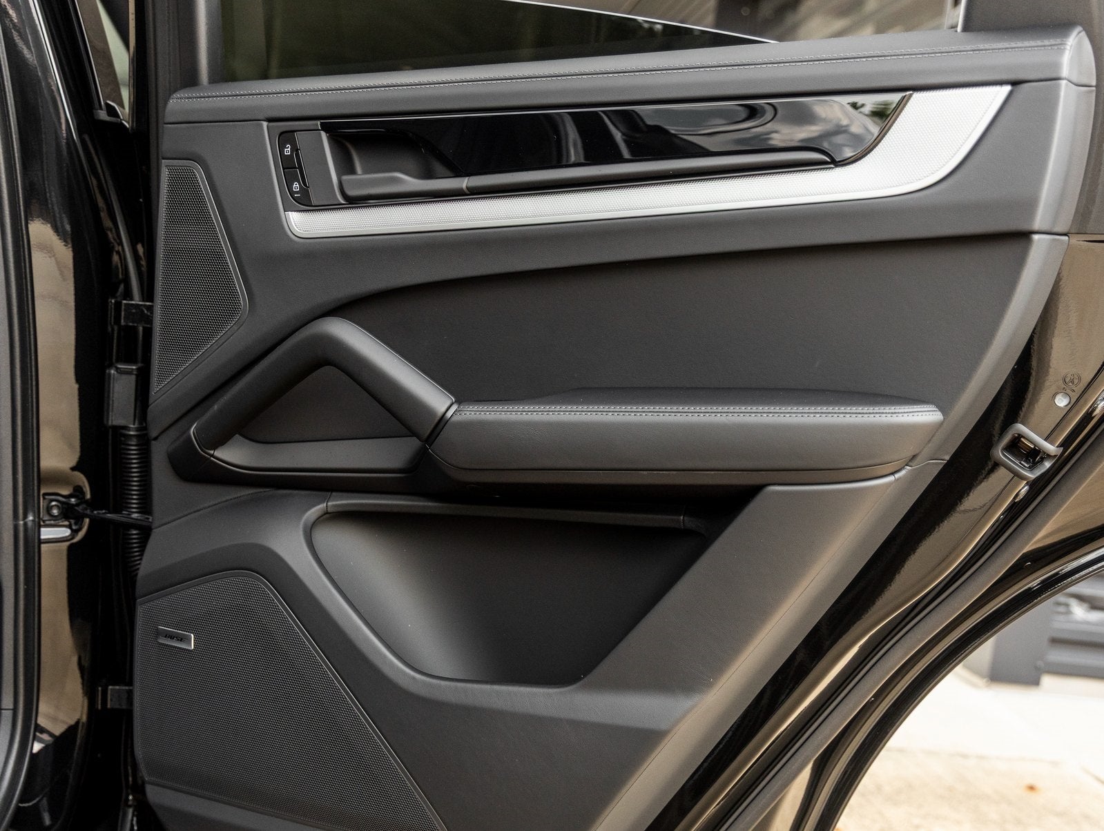 The Cayenne Coupe stands as a beacon of design and performance, its Chromite Black Metallic exterior not just a color, but a badge of honor that reflects Porsche's illustrious design heritage. Adorned with striking 21-inch RS Spyder Design Wheels in Satin Black, Sport Tailpipes in Dark Bronze, and Exclusive Design Taillights, it presents an athletic stance. The SportDesign Front Fascia adds to its commanding road presence, while details like the PORSCHE Logo and Model Designation in High Gloss Black underscore its bespoke style.