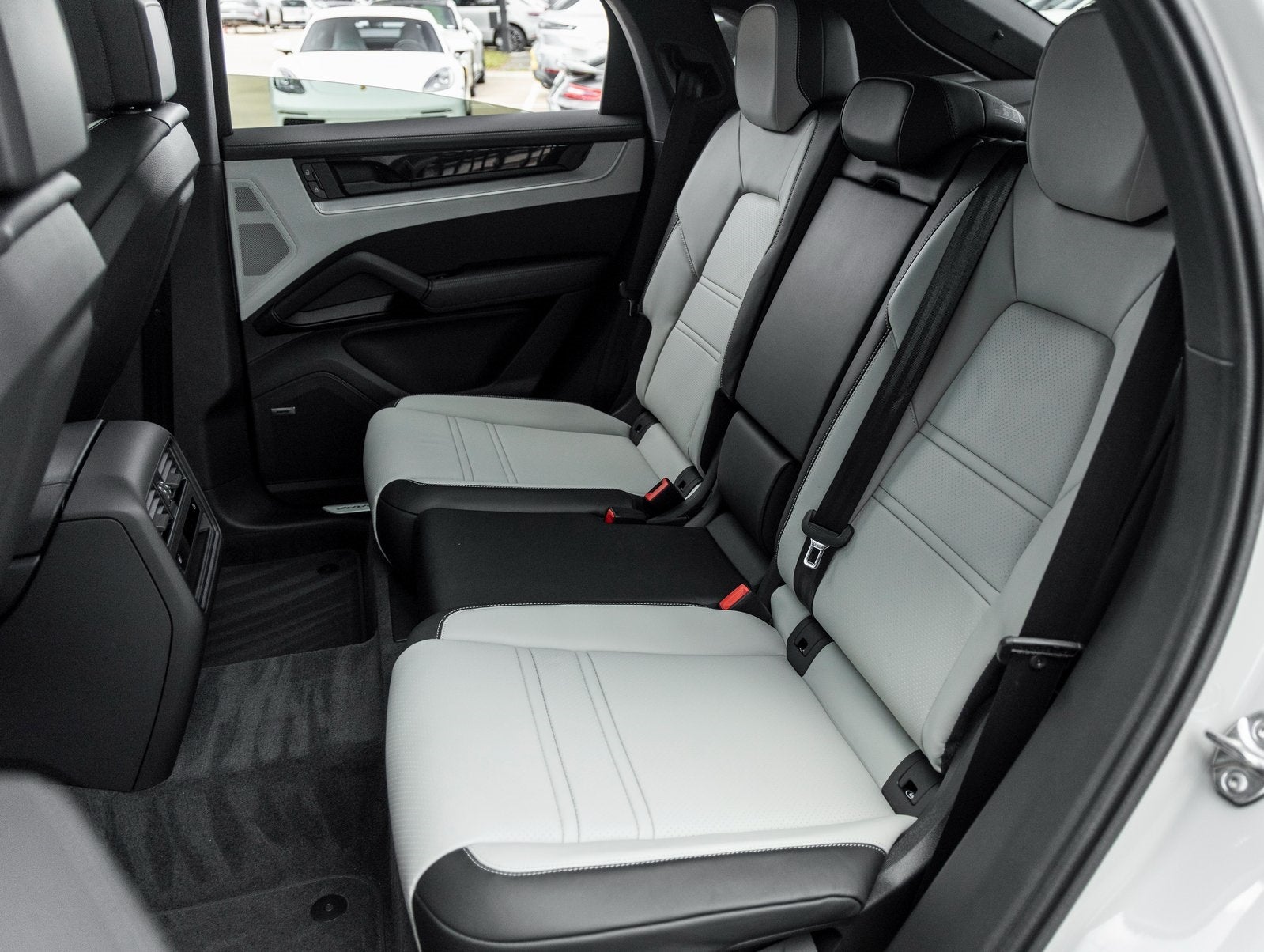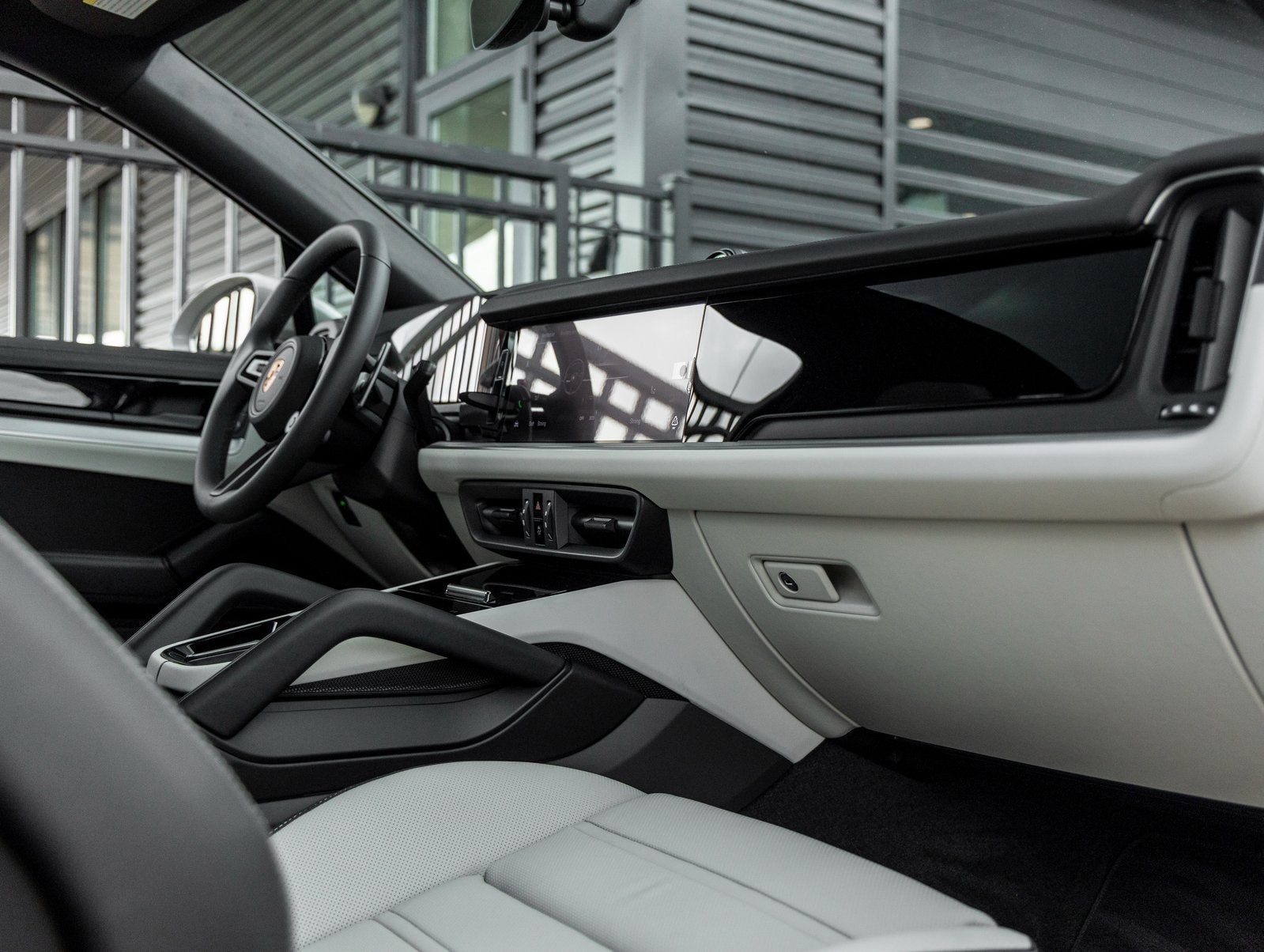 The Cayenne Coupe stands as a beacon of design and performance, its Chalk exterior not just a color, but a badge of elegance that reflects Porsche's illustrious heritage. Adorned with 21-inch RS Spyder Design Wheels in High Gloss Black, Roof Spoiler in High Gloss Black, and Sport Tailpipes in Dark Bronze, it presents a commanding and sporty stance.