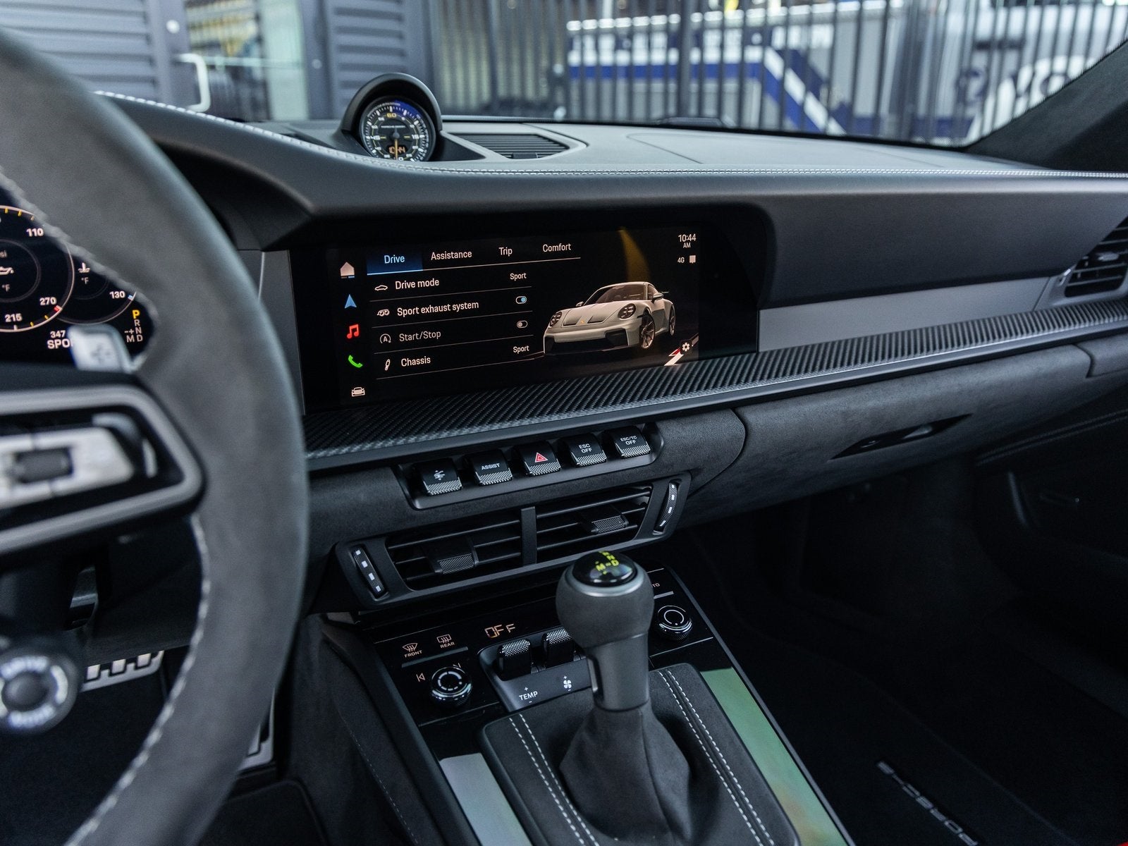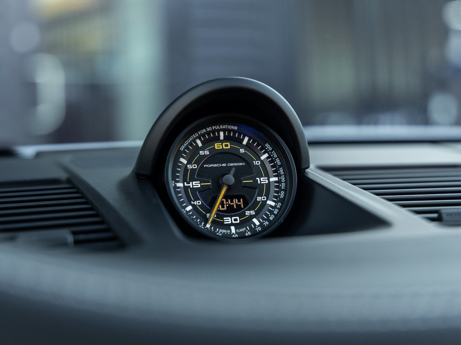 • Chrono Package with Porsche Design GT Clock: A sophisticated timepiece integrated into the dash, reflecting Porsches racing legacy.